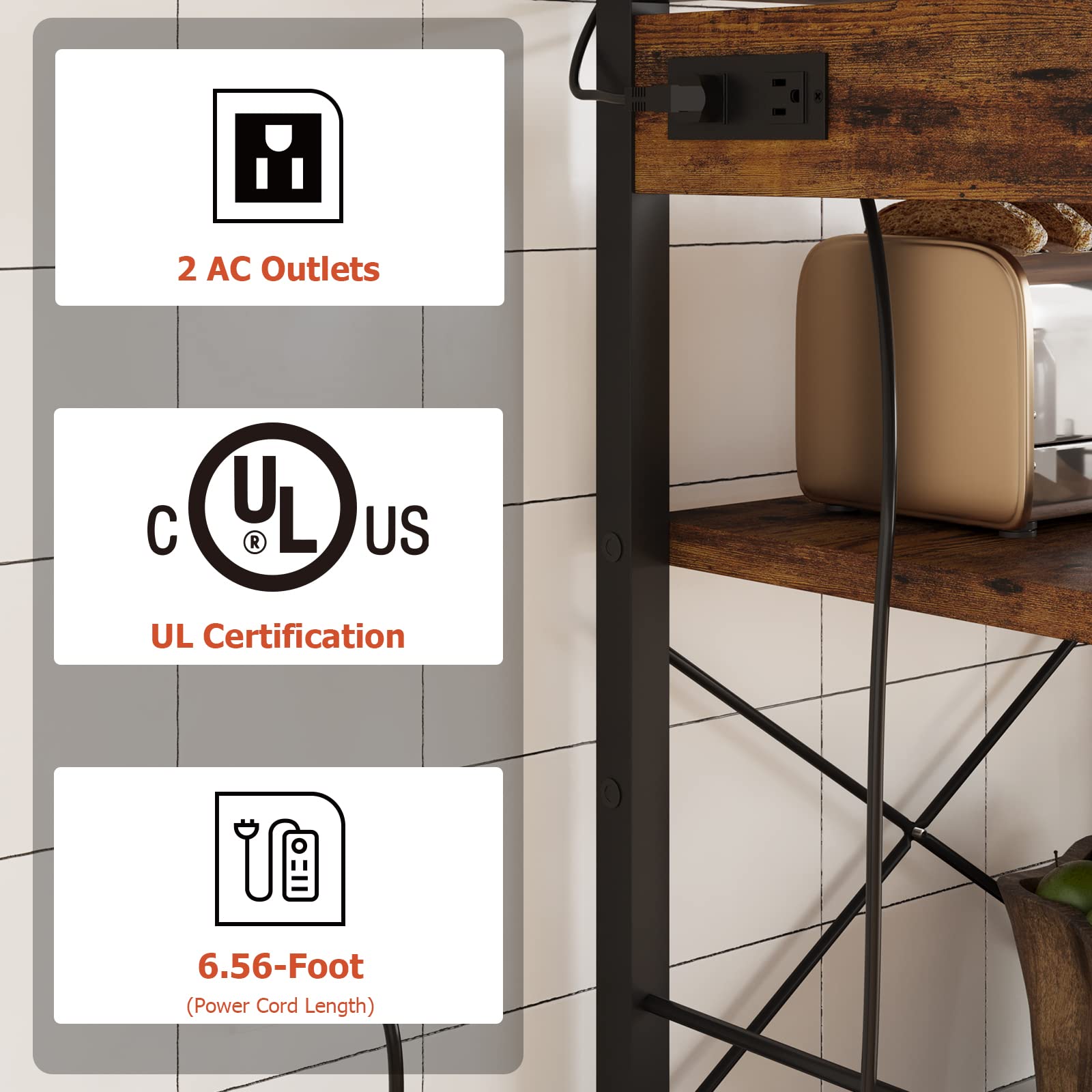 This bakers rack is perfect for storing all my baking supplies. The power outlet is very convenient, and the shelves provide plenty of space.