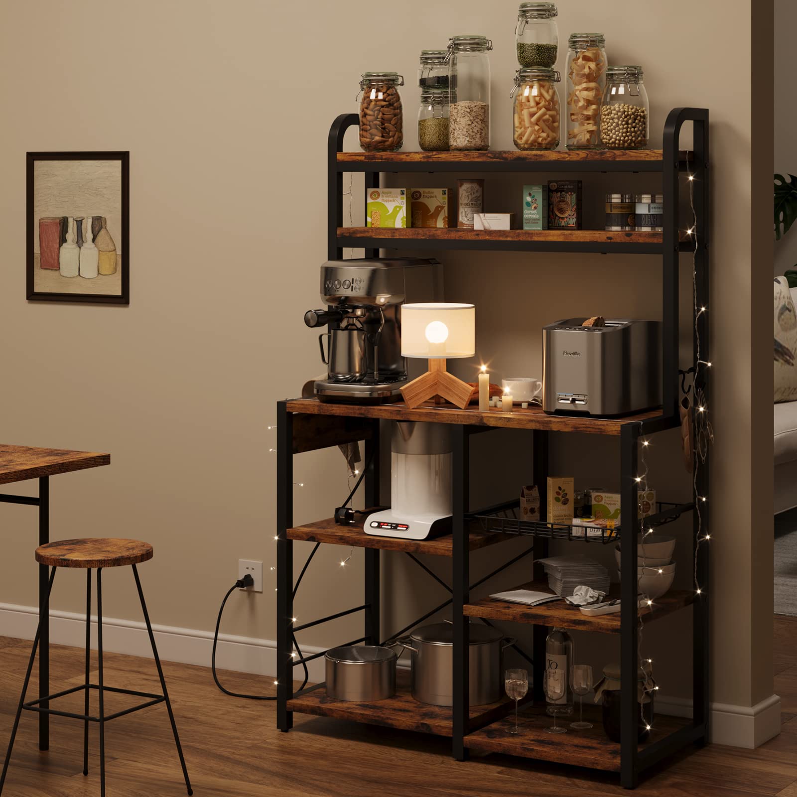 If you're a coffee enthusiast, this bakers rack is a must-have. The power outlet is great for your coffee maker, and the shelves provide plenty of storage.