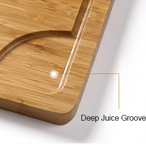 - Multi-Functional Serving Tray: In addition to its cutting and chopping capabilities, this bamboo board doubles as a stylish serving tray for cheese, charcuterie, roasted turkey, and other appetizers. Its elegant wood grain and spacious surface make it perfect for showcasing and serving a variety of dishes at gatherings and events.