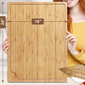 - Premium Bamboo Quality: Crafted from high-quality bamboo, this extra-large cutting board is not only durable and sturdy but also environmentally friendly. The natural bamboo material is known for its strength and sustainability, making it a reliable addition to any kitchen.