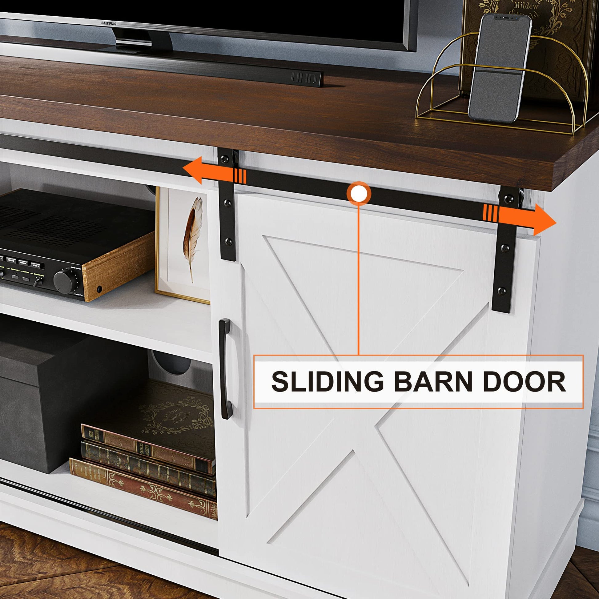 I had high hopes for this TV stand, but the materials feel cheap and flimsy. The sliding barn doors don't glide smoothly, and the assembly process was a nightmare with unclear instructions. Not worth the price.