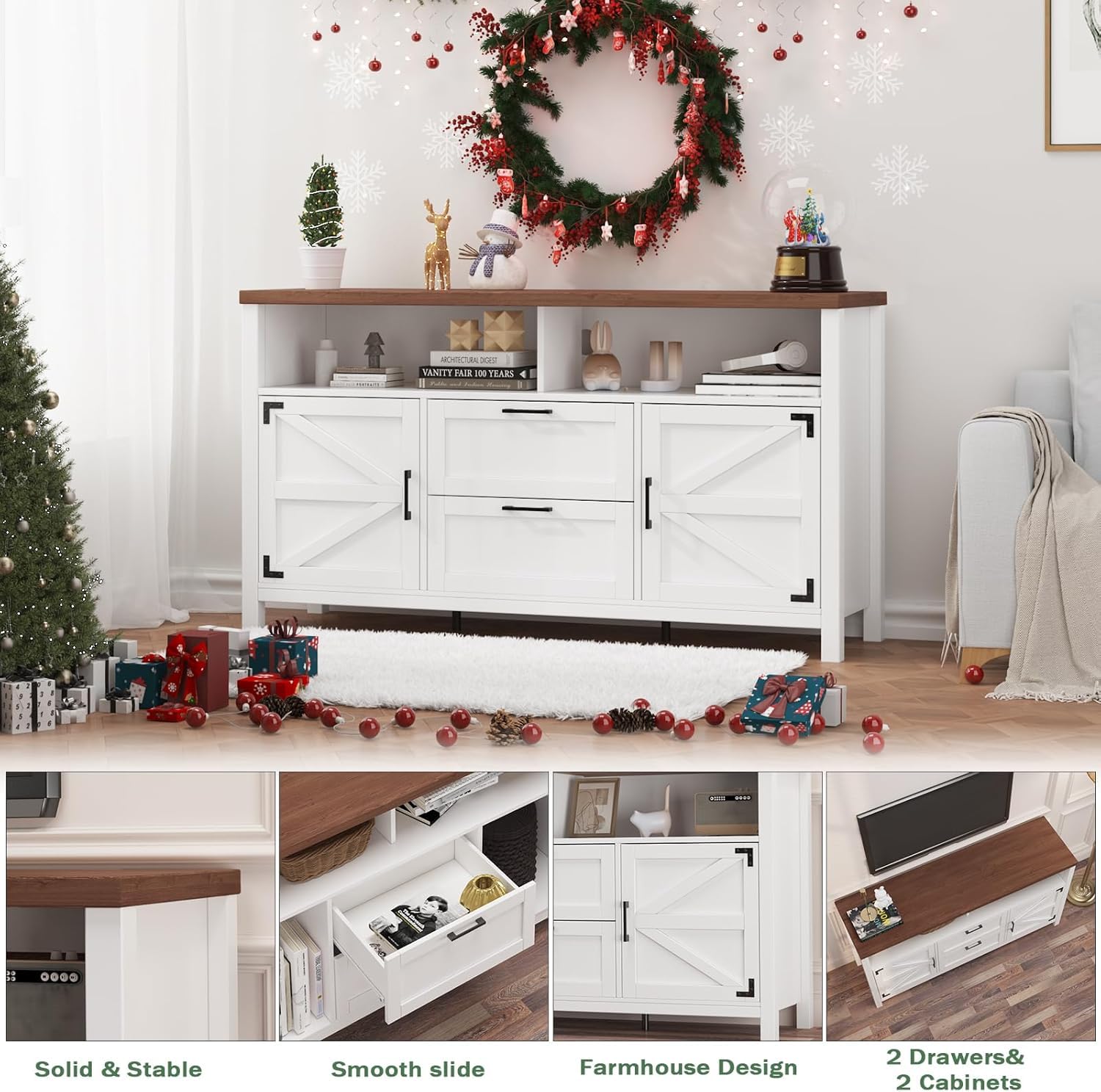 GAOMON Farmhouse TV Stand for 65 Inch TV,55¡±Modern Entertainment Center With Barn Door,Tall Media Console Table with Storage Shelve&Drawers,Wood TV Stand for Living Room/Kitchen/ Dining Room/Apartment(White)