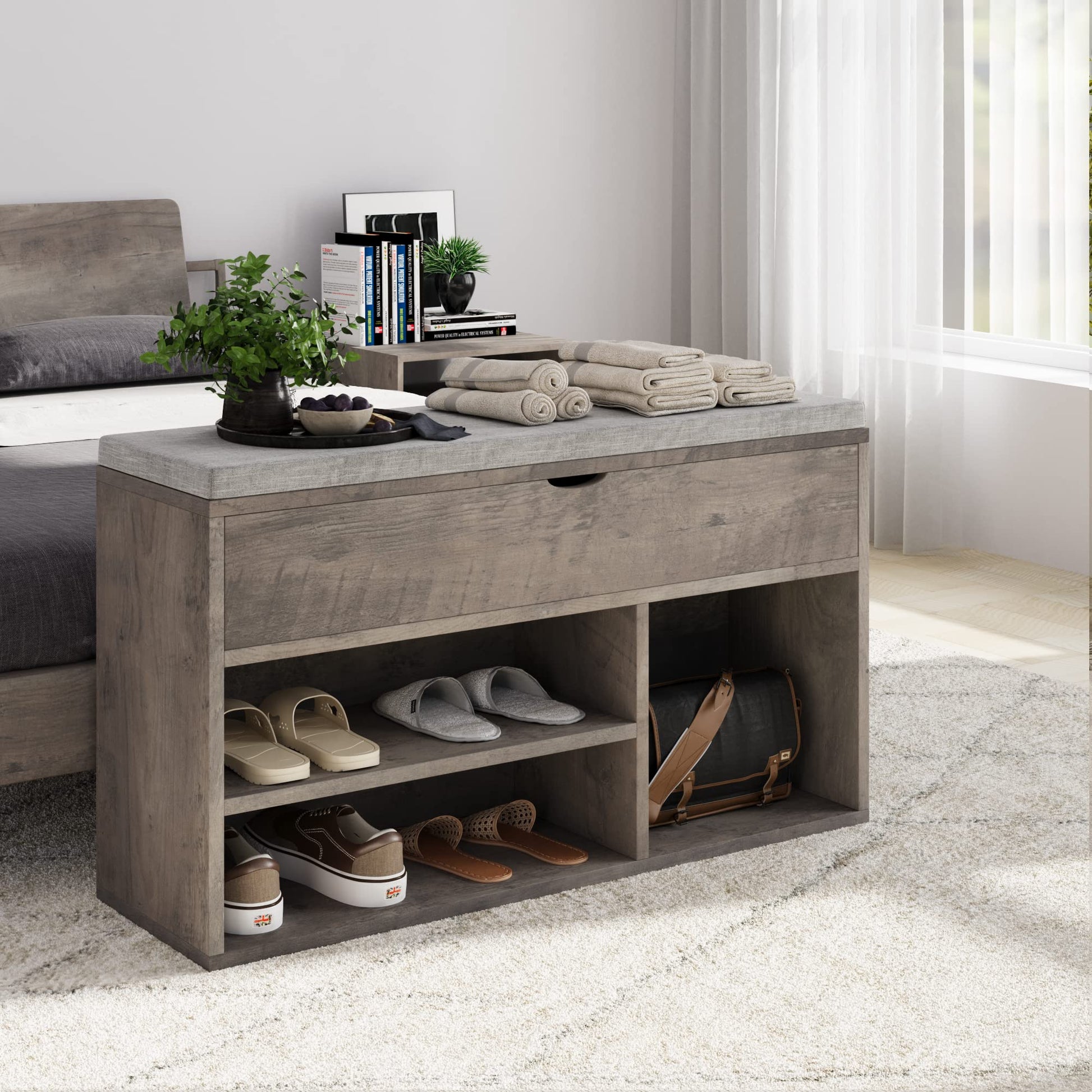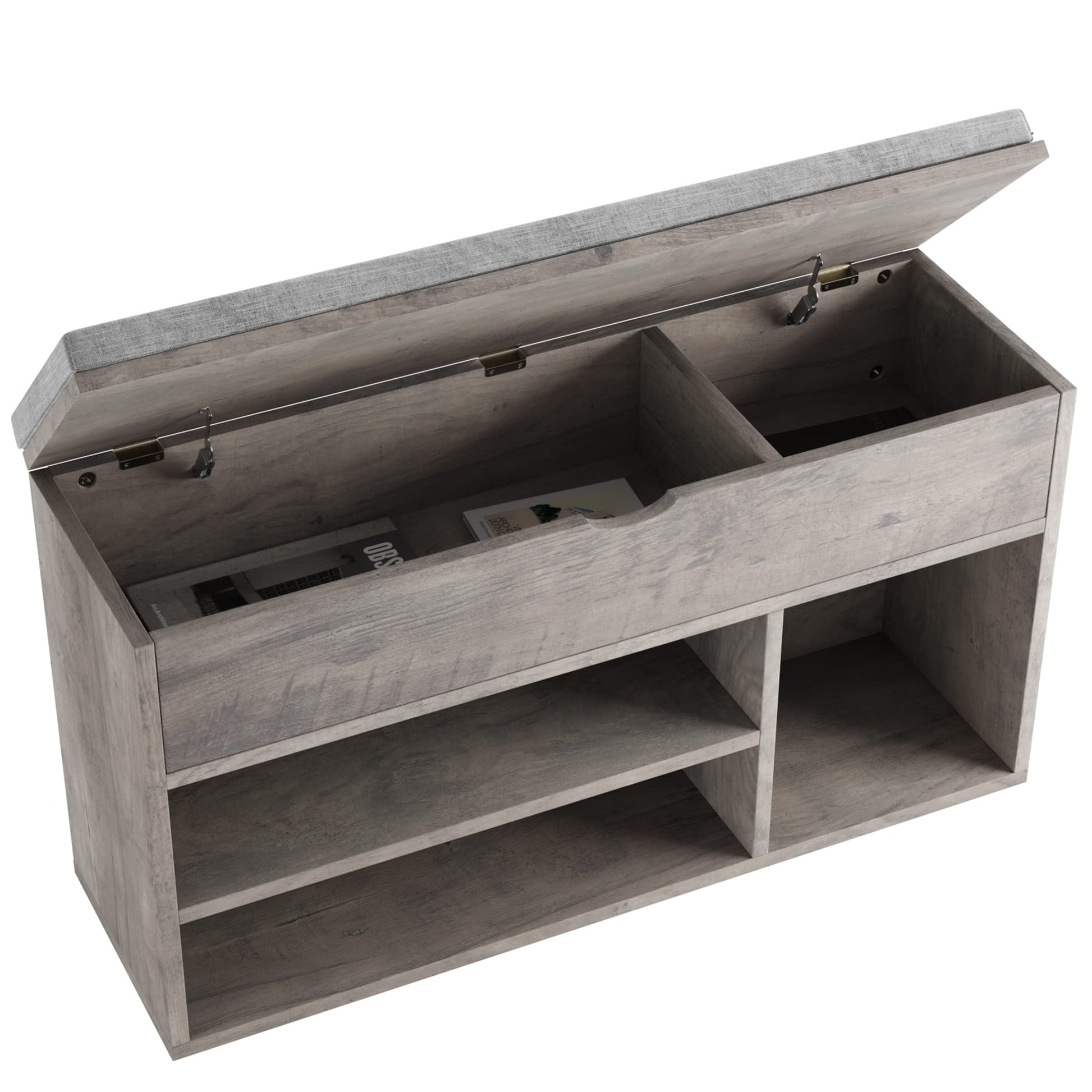 GAOMON Shoe Storage Bench with 3 Cubes, Lift-up Storage, Cushion, Durable Particleboard, Sturdy Steel, for Hallway, Entryway - Grey
