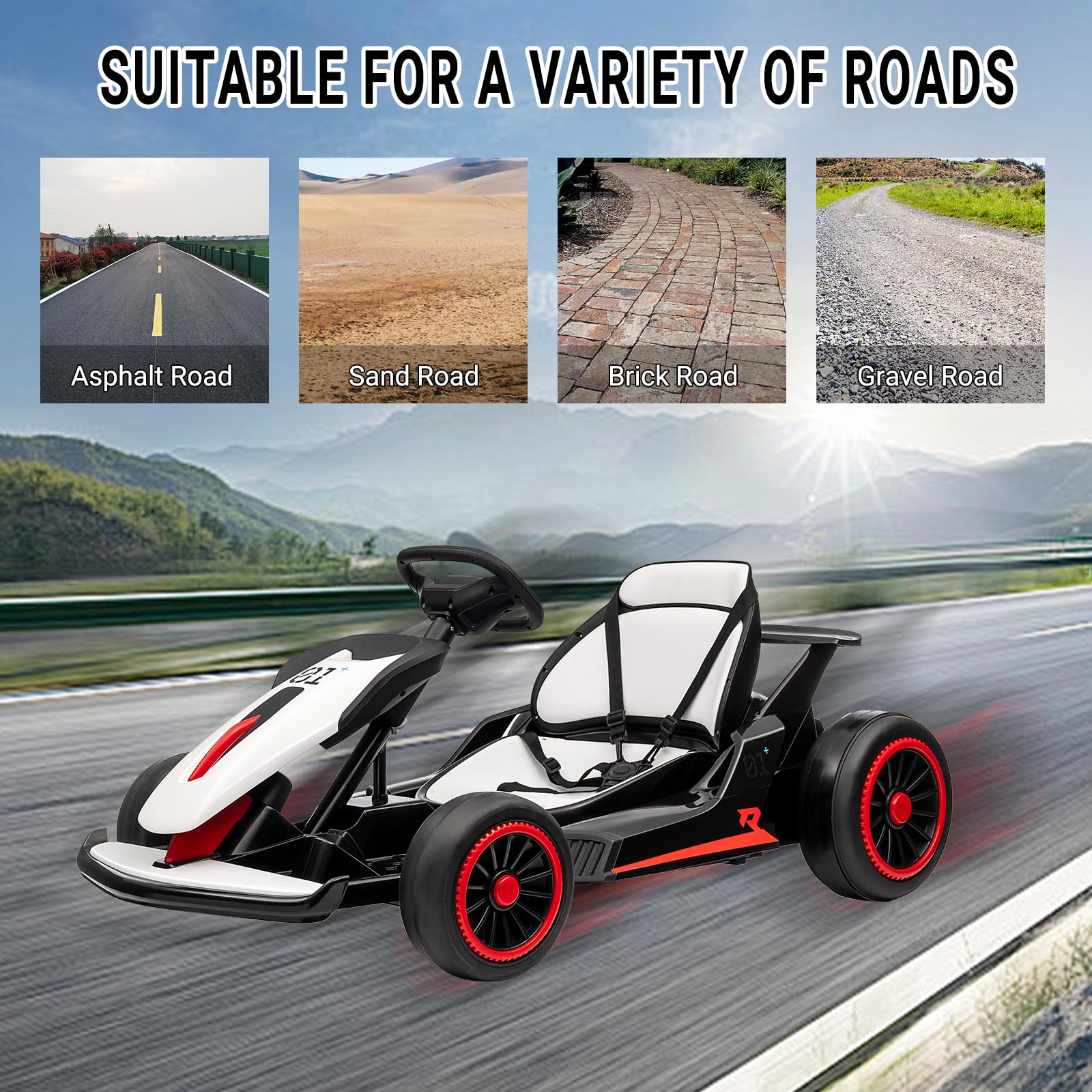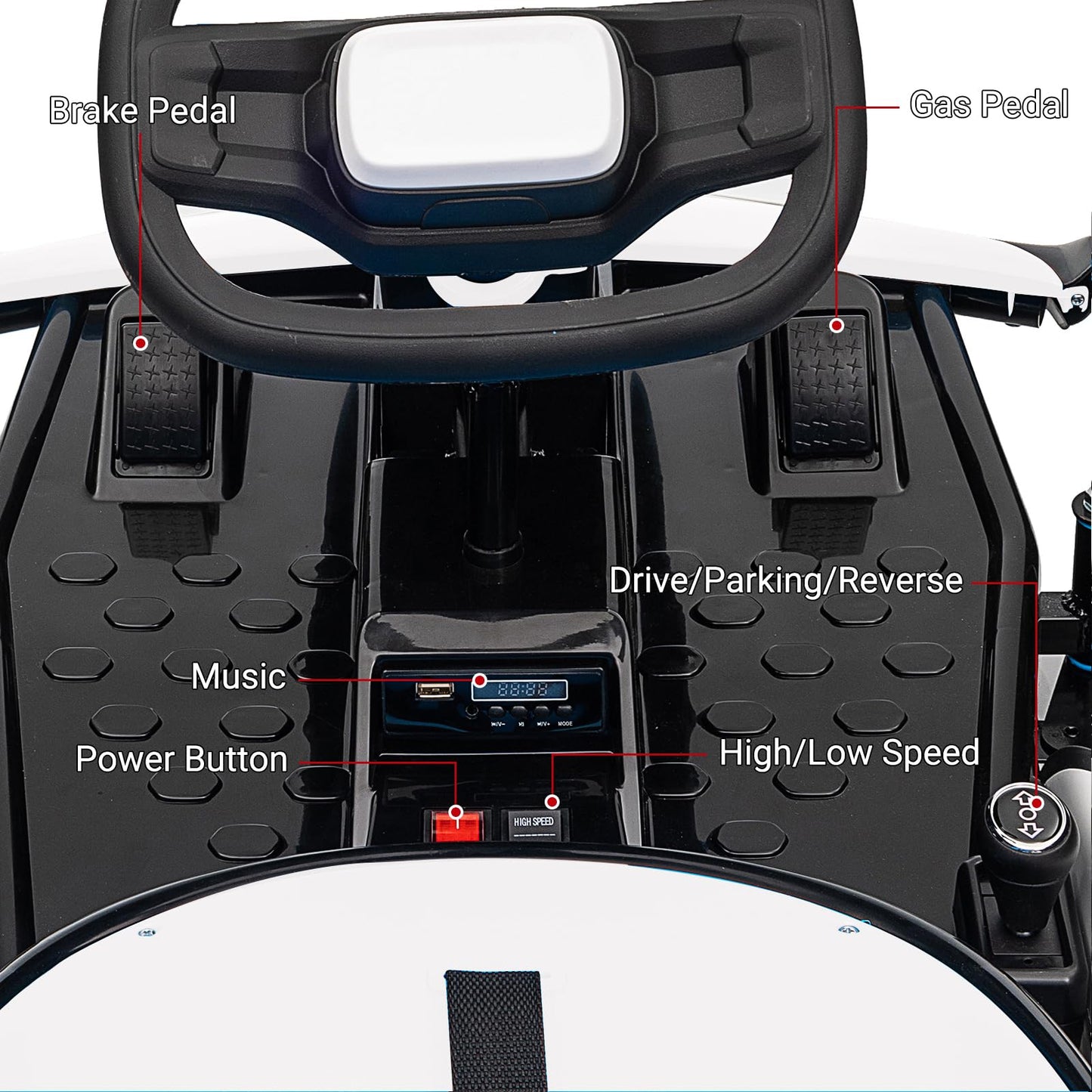 - MULTI FUNCTIONS: There are two speed modes that children can adjust freely. Additionally, go kart for kids has corresponding interfaces, allowing children to enjoy their favorite tunes from a USB flash drive or MP3.