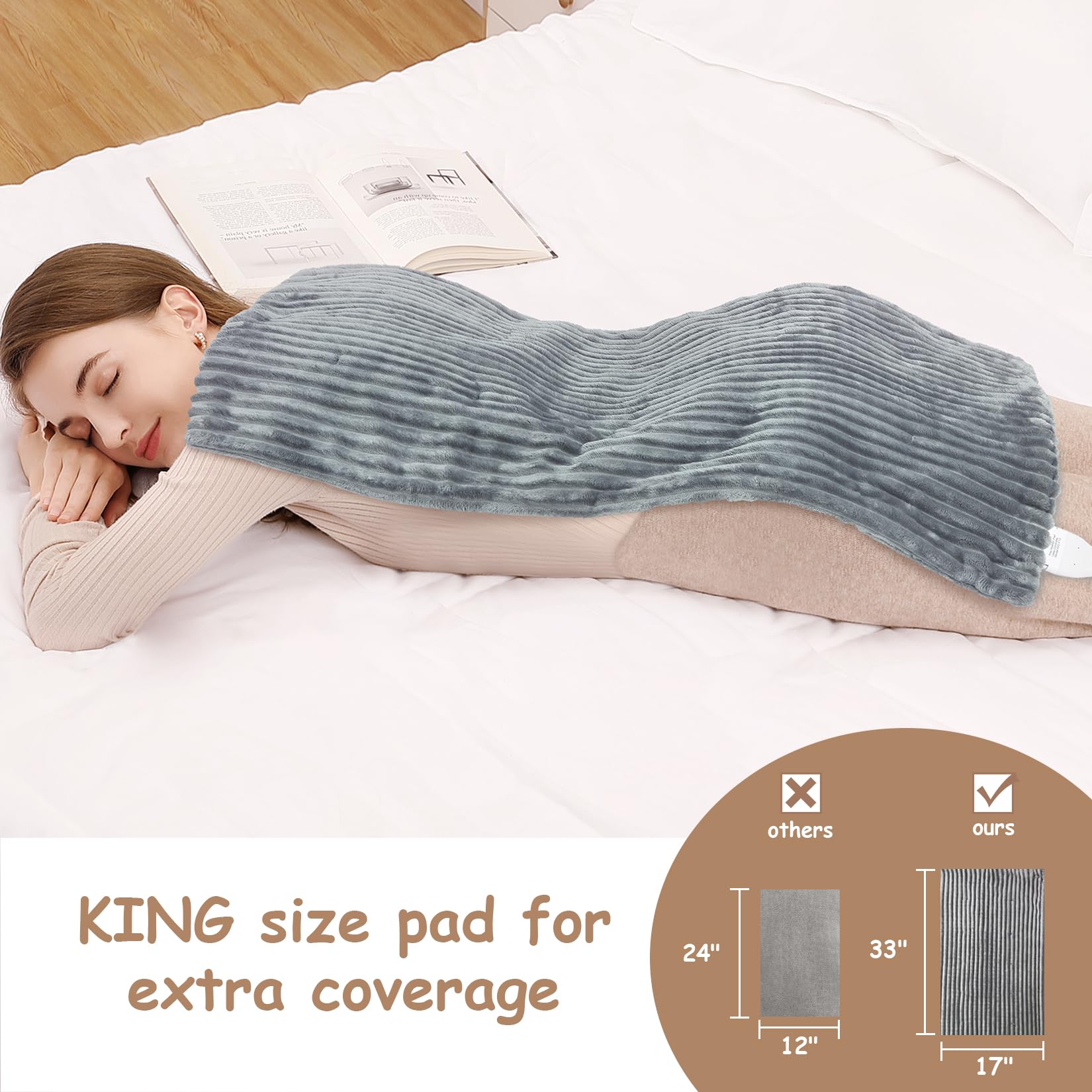 GAOMON Heating Pad for Back Pain Relief, 17 inch X 33 inch XXX-Large Heating Pads for Cramps, Neck and Shoulder,LCD Electric Heating Pad with 6 Fast Heating Settings,Moist Dry Heat Options,Auto-Off, Machine Washable