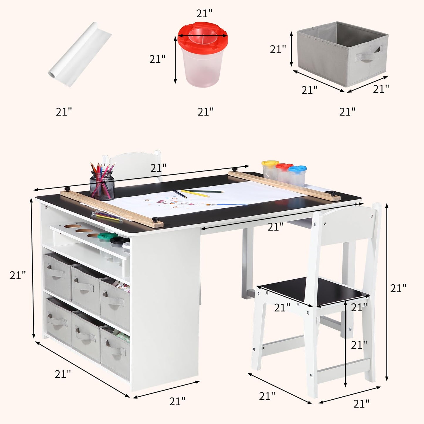 GAOMON Kids Art Table and Chairs Set, Living and Learning Kids' Art Table and Stool Set With Large Storage Desk and Portable Art Supply Organizer, Kids Activity Table, Drawing and Painting Desk