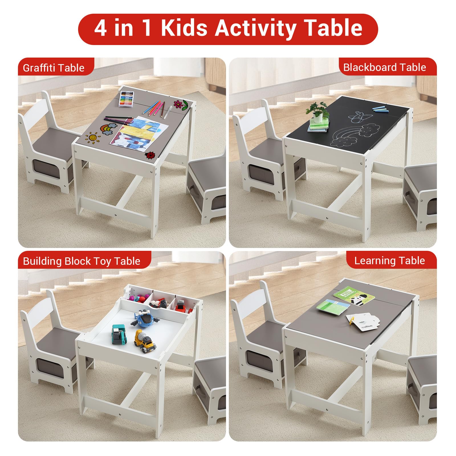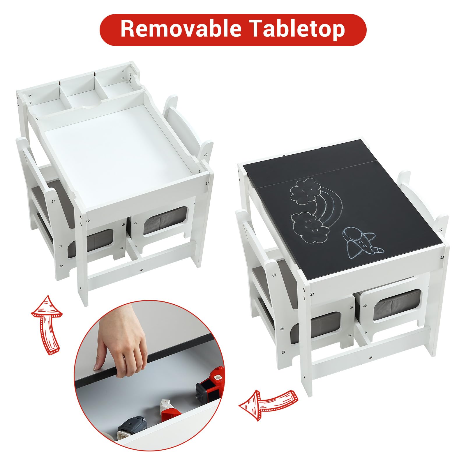 The tabletop can be easily Detachable, and after removing it, children can play with toys, build blocks or make crafts with friends.