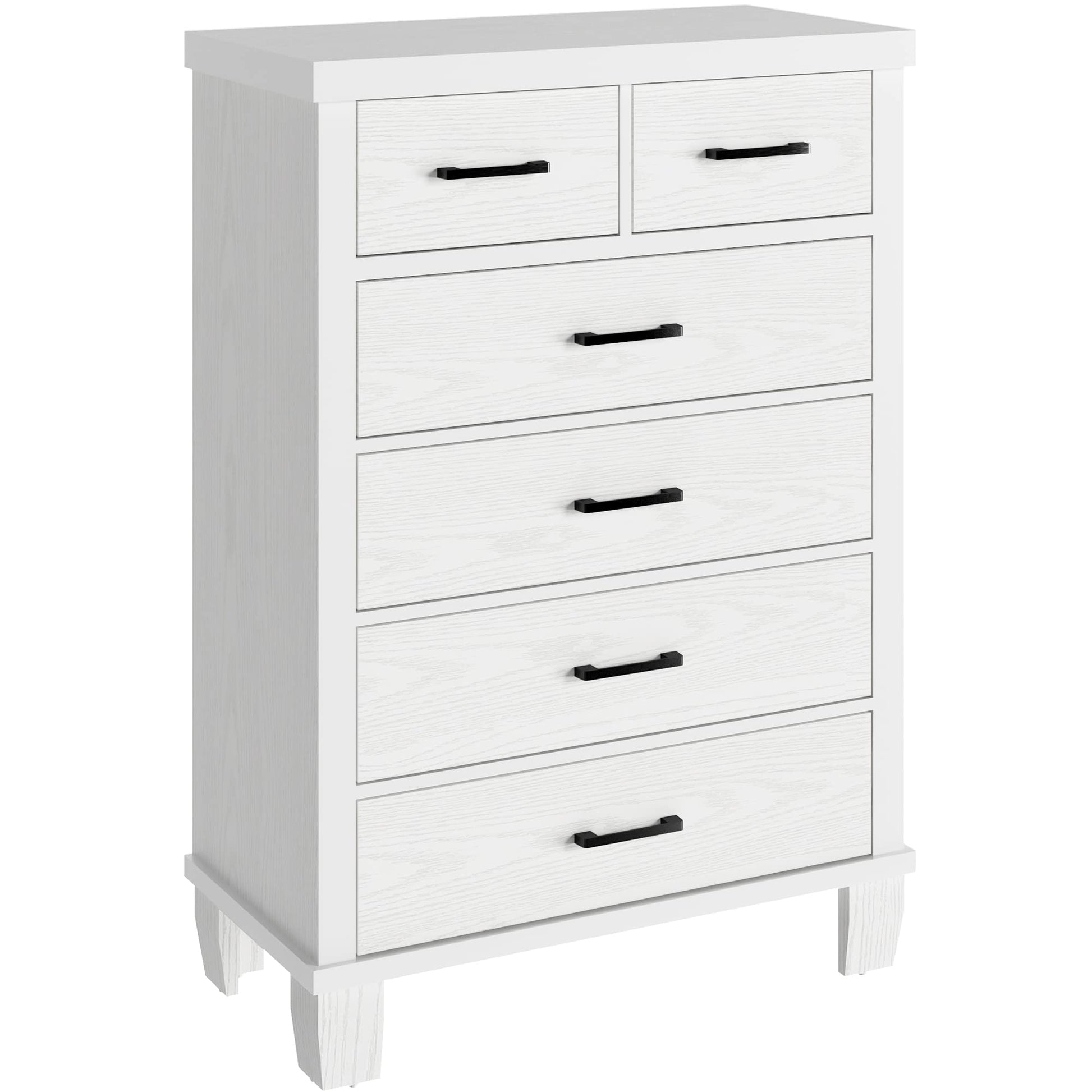 Made of high-quality MDF material and covered in friendly paint for easy maintenance.Contains 2 small drawers and 4 large drawers, which can provide huge space for all your clutter.The weight capacity of the small drawer is 16 lbs, while the large is 33 lbs.The metal sliding rail adopts a new structure to increase the stability of the drawer.Equipped with an anti-toppling fitting to protect the safety of your family.The appearance of the dresser is exquisite, which can match almost any of your home styles, such as bedroom, entry way, and living room.
