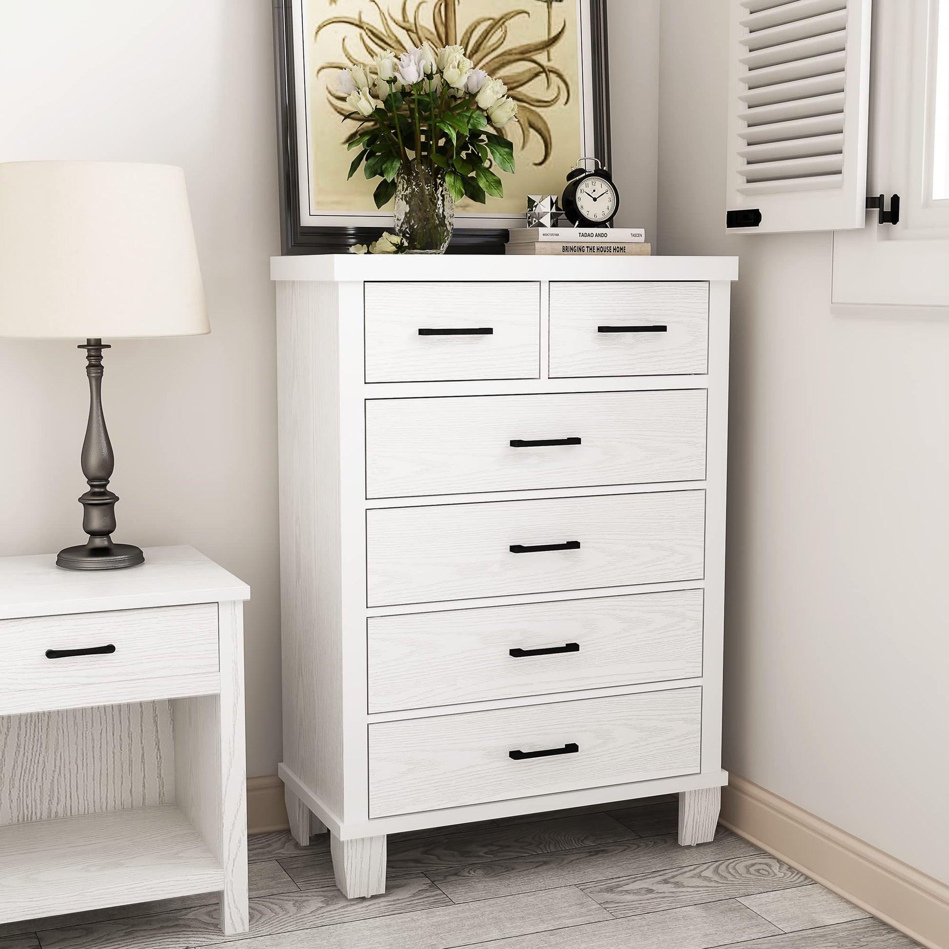 GAOMON Modern 7 Drawers Dresser, Chest of Drawers Closet Organizers and Storage Clothes, Modern Dressers for Closet Living Room, Kids Bedroom, Hallway, Nursery (White, 6 Drawers Dresser)