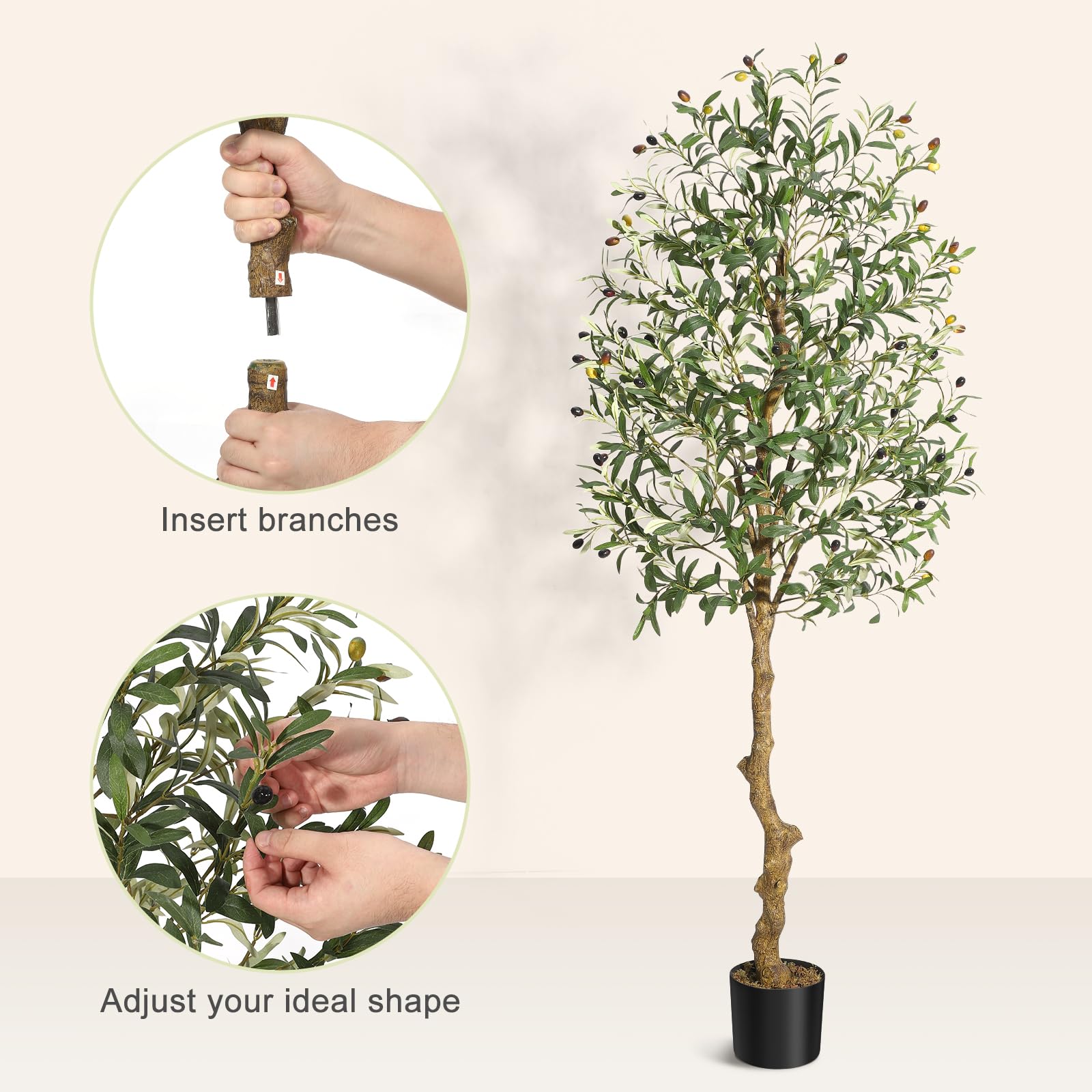GAOMON Olive Trees Artificial Indoor, 6FT Tall Olive Tree Plants, Faux Olive Tree with Realistic Trunk, Leaves, Fruits for Home Office Decor