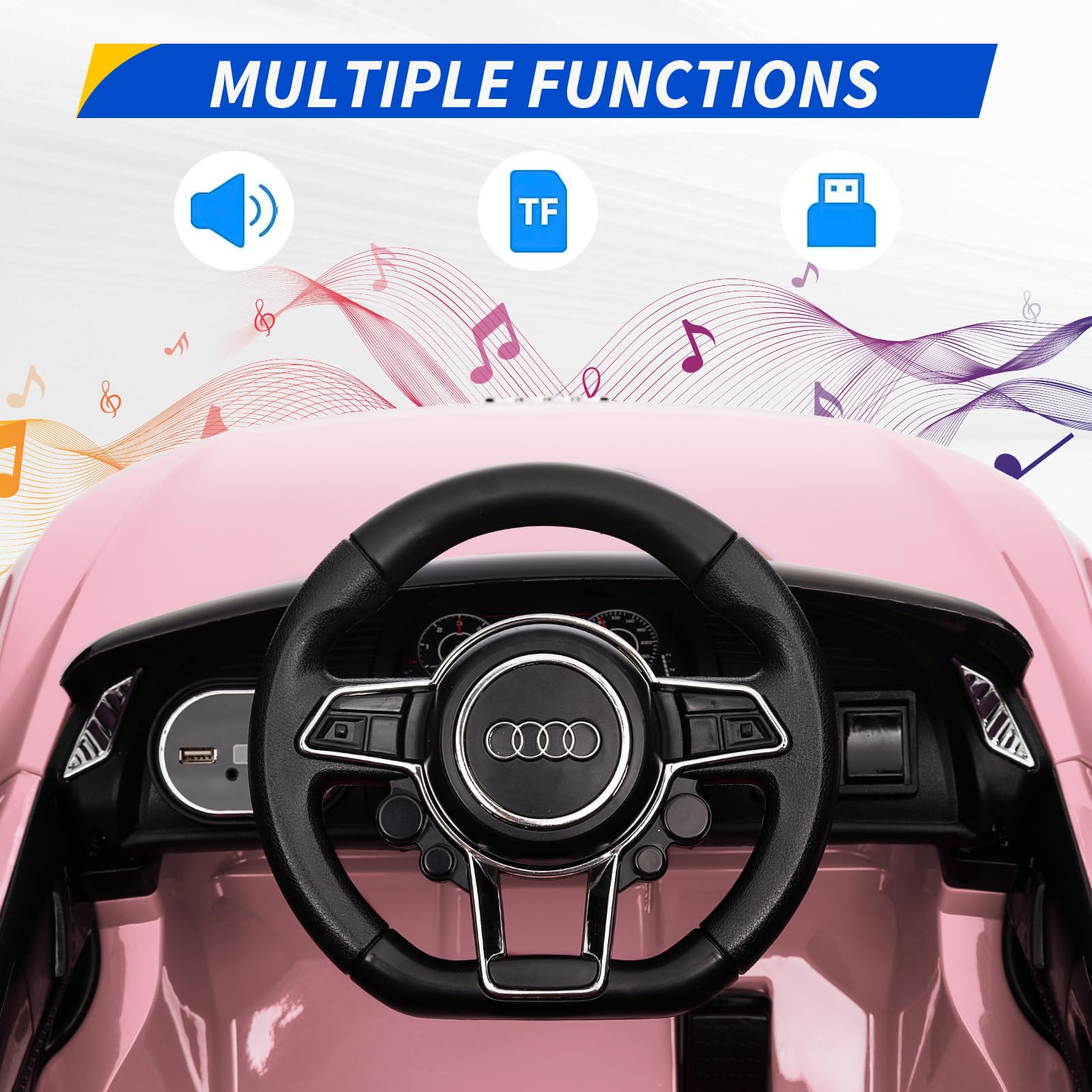 GAOMON Ride Car for Kids, 12V Power Battery Electric Vehicles for 3-7 Toddlers, Licensed Toy Car with Remote Control, MP3 Player (Pink)