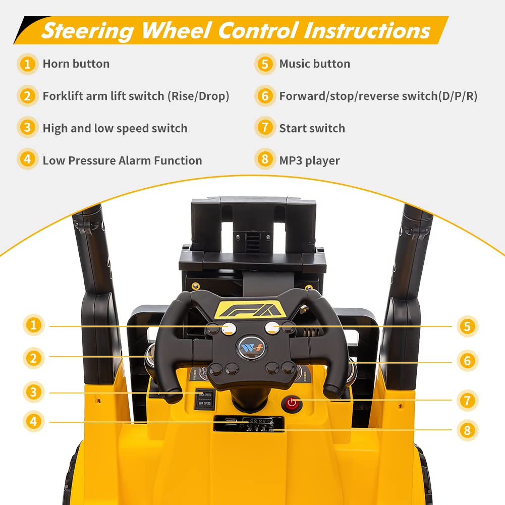 GAOMON Ride on Forklift Car with Tent, 12V Electric Ride On Car with Liftable Fork and Pallet, High/Low Variable Speed,Built-in Music,USB and Low-Power Alarm Ride On for Boys and Girls,Yellow