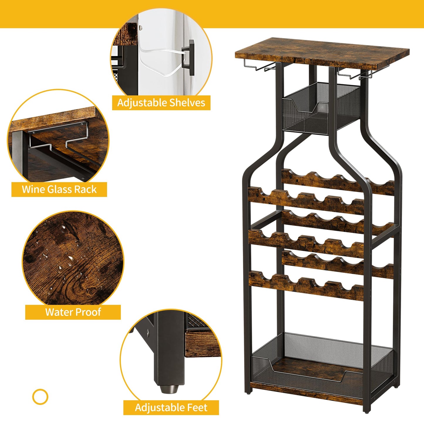 GAOMON ?Rustic Brown Metal Wine Rack Console Table, Freestanding Floor Bottles Organizer & Display Shelf,Durable Metal Freestanding Wine Storage Cabinet Shelf?,for Bar Kitchen Dining (?Rustic Brown)