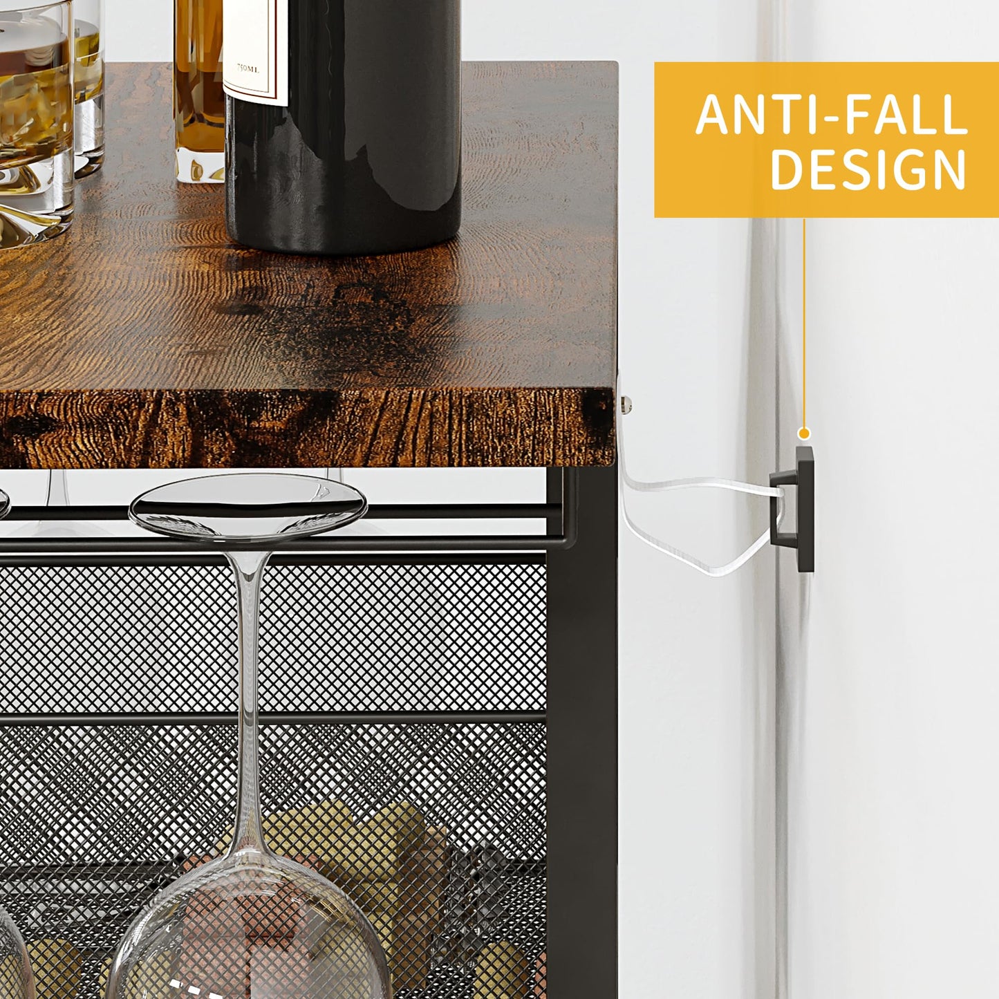 Wine Glass Rack: Selling Point: Provides a dedicated area for storing wine glasses, effectively organizing and displaying your glassware collection while preventing collisions and damage.Waterproof: Selling Point: Features waterproof functionality to prevent water penetration, protecting the items inside the wine cabinet from moisture and water damage. Ensures durability, easy cleaning, and prolongs the cabinet's lifespan.Adjustable Feet: Selling Point: The adjustable feet design allows for free adjustment according to uneven ground, ensuring stable support for the wine cabinet to prevent shaking and tilting, while protecting the floor from scratches.