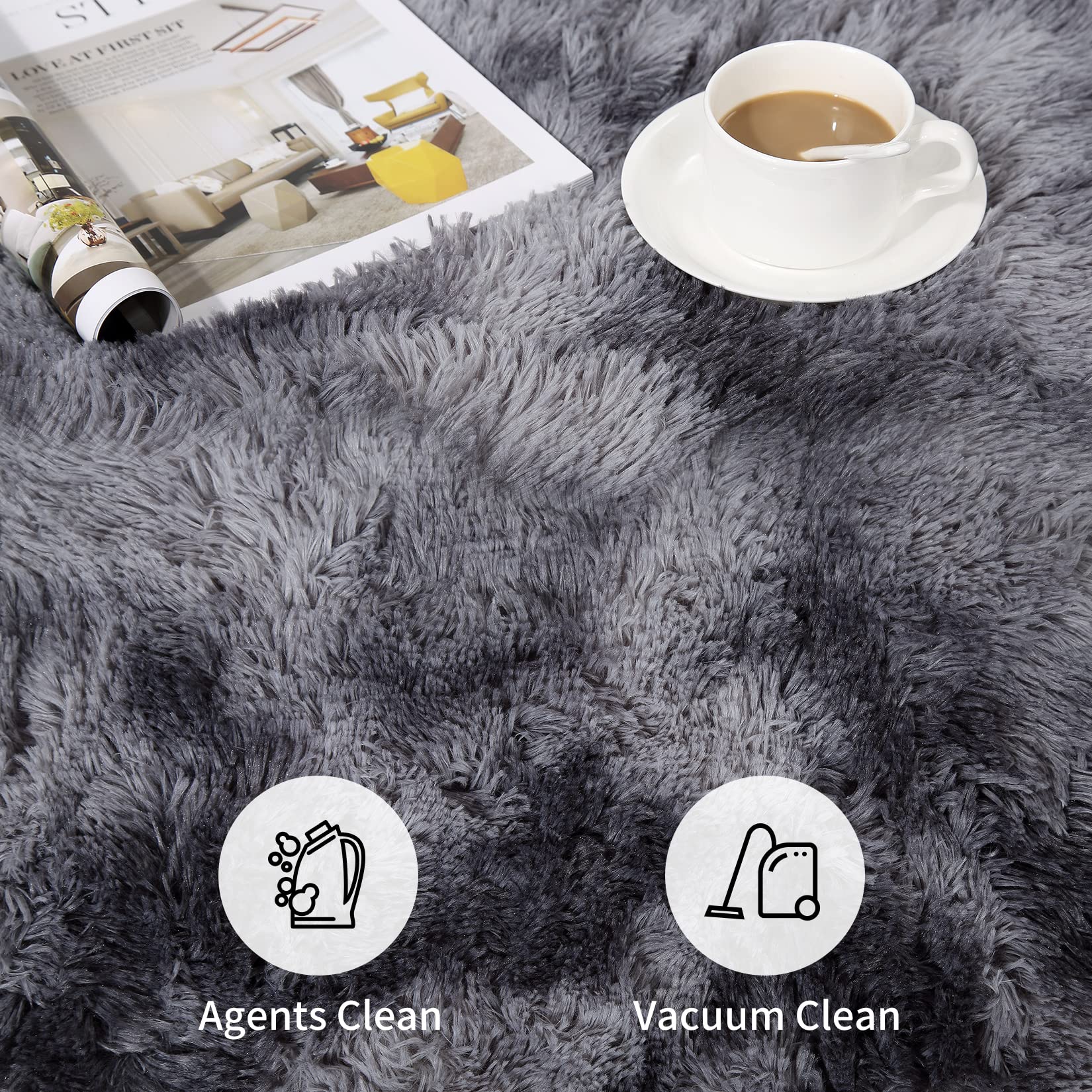 GAOMON Shag Area Rug Plush Shaggy Area Rug Fluffy Fur Rug for Kids Nursery Dorm Room, Furry Plush Rugs Floor Carpet Modern Accent Rug for Indoor Bedroom Living Room, Dark Grey, 9 x 12 Feet