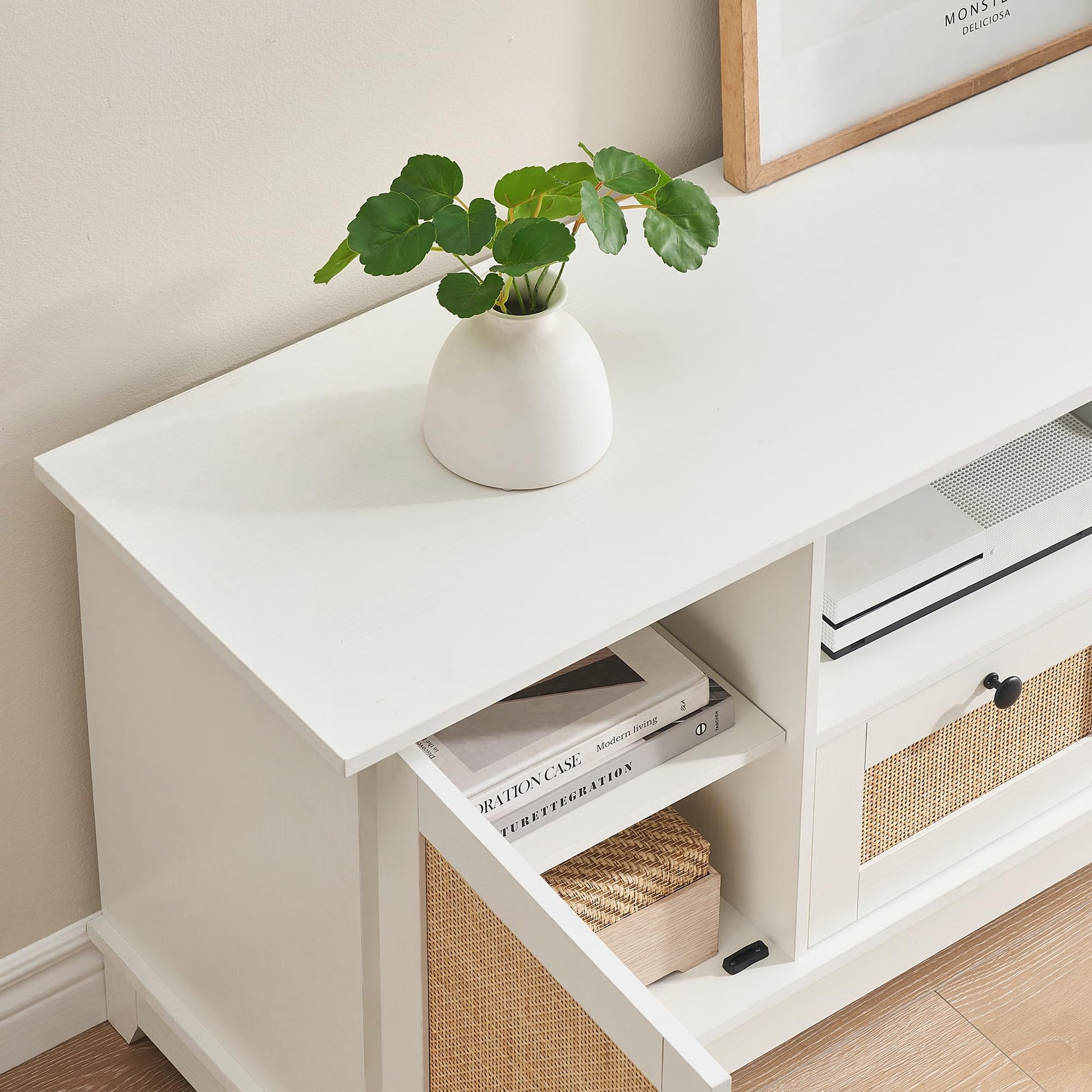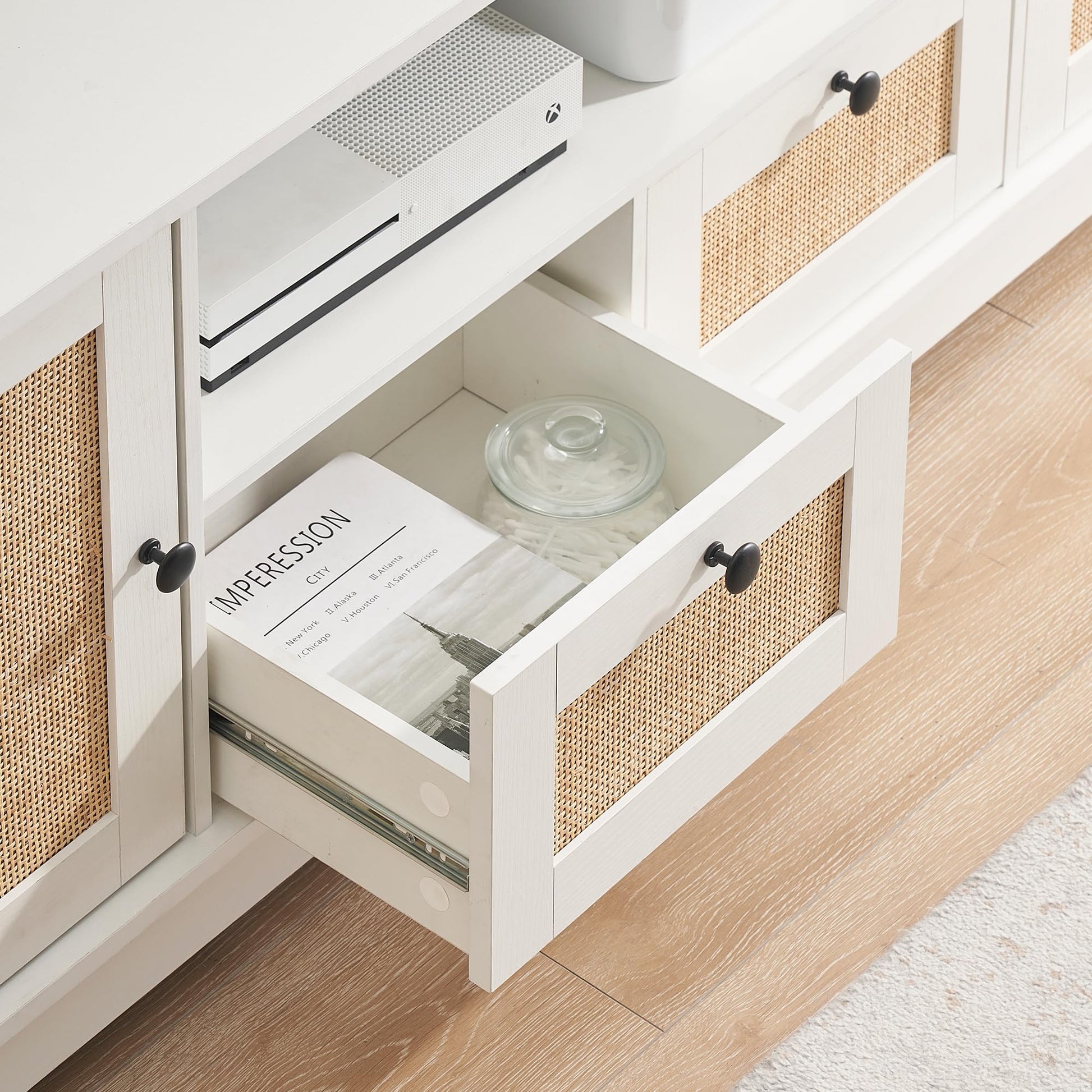 GAOMON TV Stand for 65+ Inch TV, Rattan Entertainment Center TV Media Console Table, Modern TV Stand with Storage and Drawer, TV Console Cabinet Furniture for Living Room