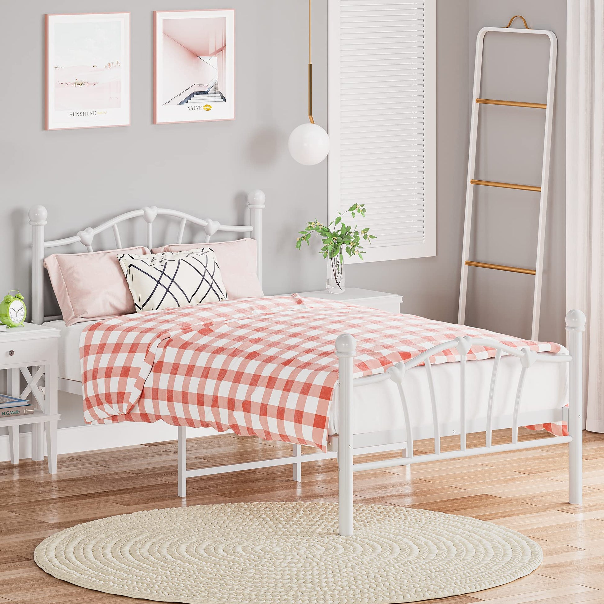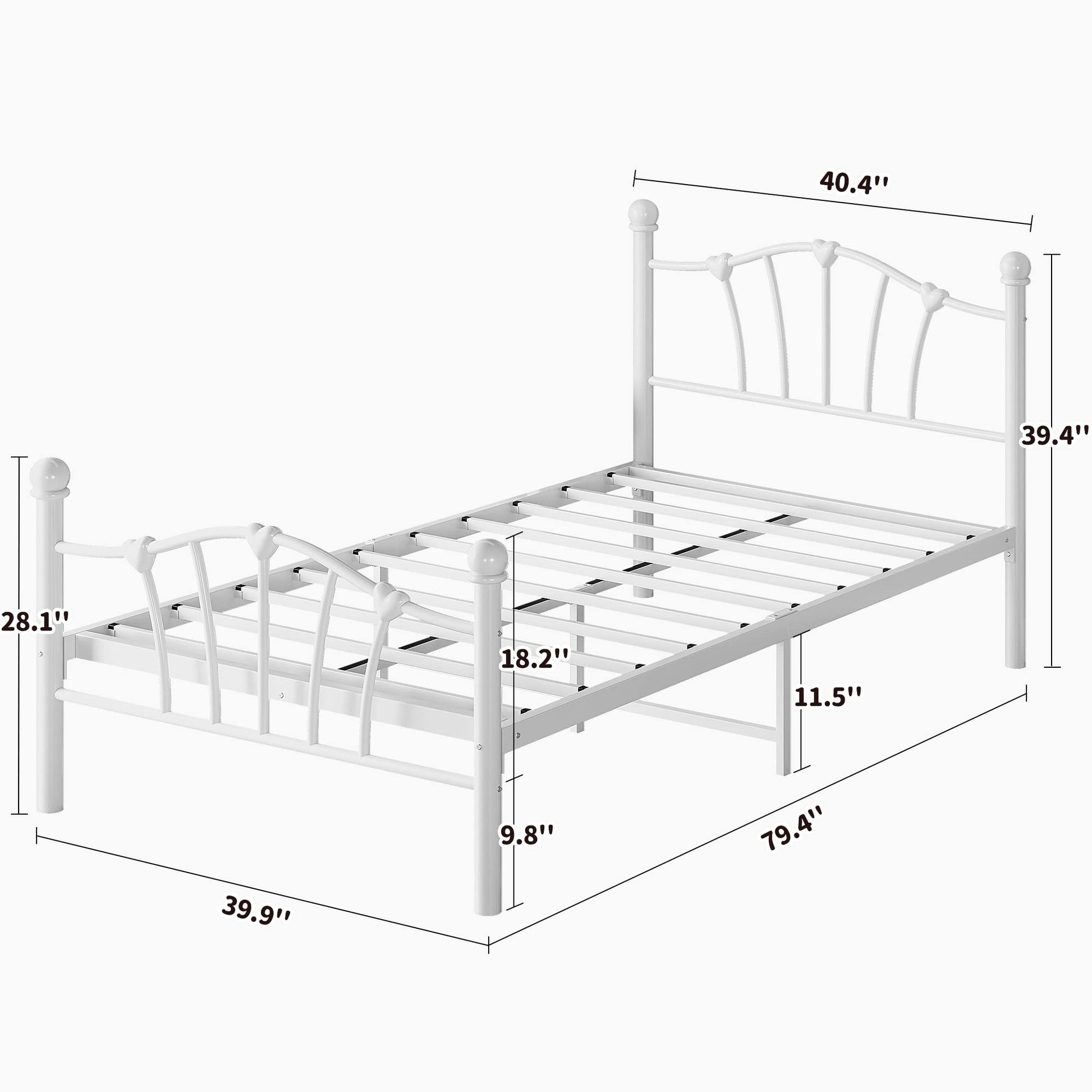 GAOMON White Twin Metal Bed Frame with Heart Shaped Headboard and Footboard Solid Metal Platform Mattress Foundation Noise-free Heavy Duty Bed Slats Support No Box Spring Needed, Easy Assembly