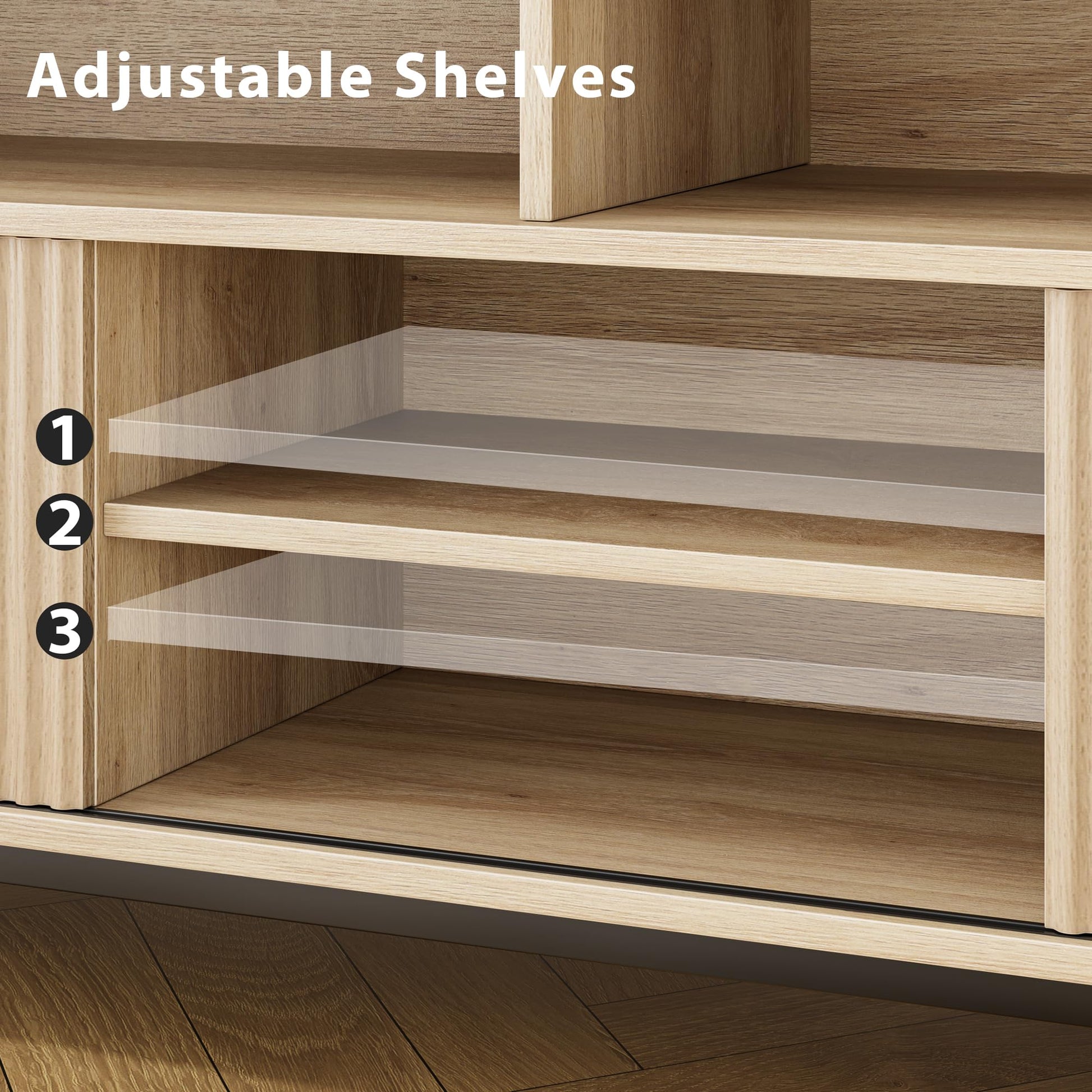 - MULTIFUNCTIONAL TV STAND: This TV cabinet is versatile and suitable for multiple scenes. The raised design on both sides of the table allows you to use the desktop storage space more conveniently to prevent items from accidentally falling. You can place this media console in the living room, bedroom, etc. There is enough space between the bottom of this TV cabinet and the floor to support the passage of most sweeping robots.