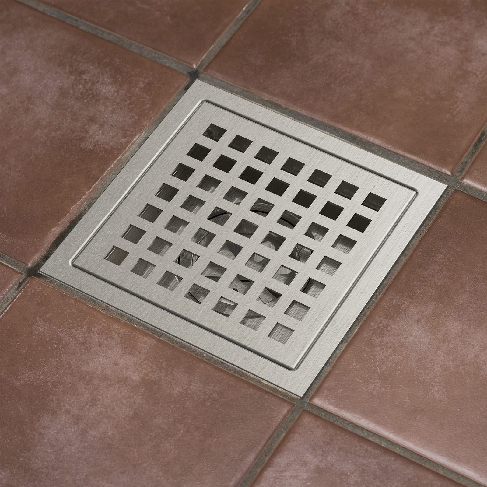 GARVEE 6 Inch Square Shower Floor Drain Brushed Nickel Removable Grid Cover Hair Filter