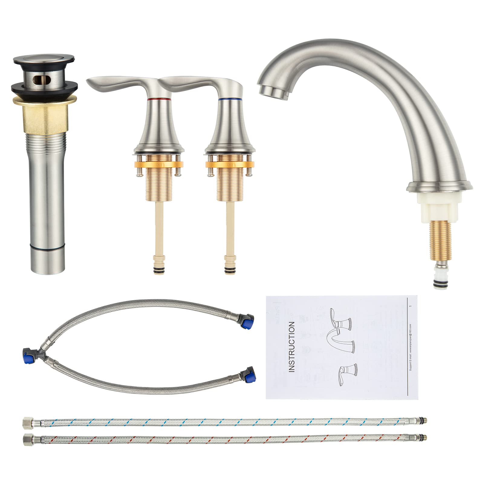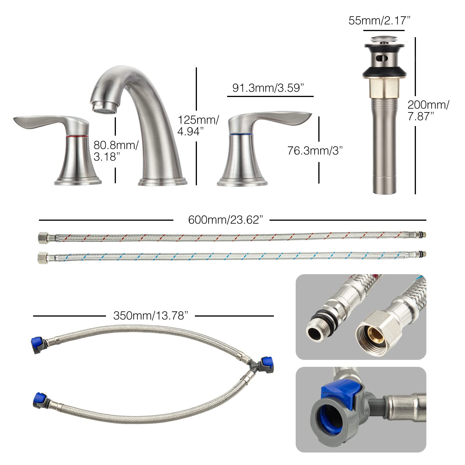 Included Components: ?Pop up drain, Cold and hot Handle, Installation instructions and installation hardware, Cold and hot water inlet pipe and trident connecting pipe, Bathroom faucet