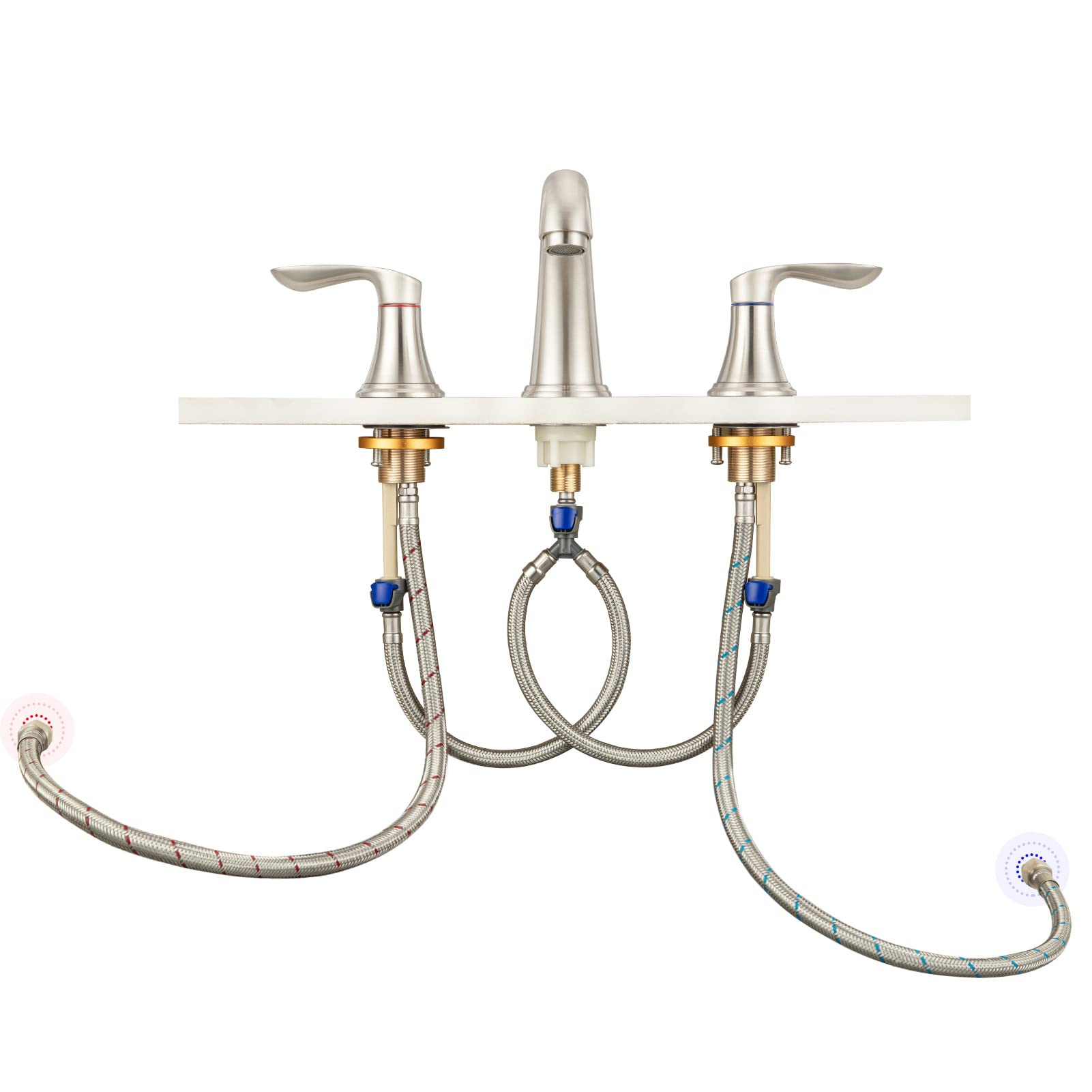 The unique trident quick connection design of the faucet allows you to easily complete the installation within 30 minutes without the need for a plumber; Package comes complete with stainless steel inlet hose and stainless steel connecting pipes and all parts needed for installation.