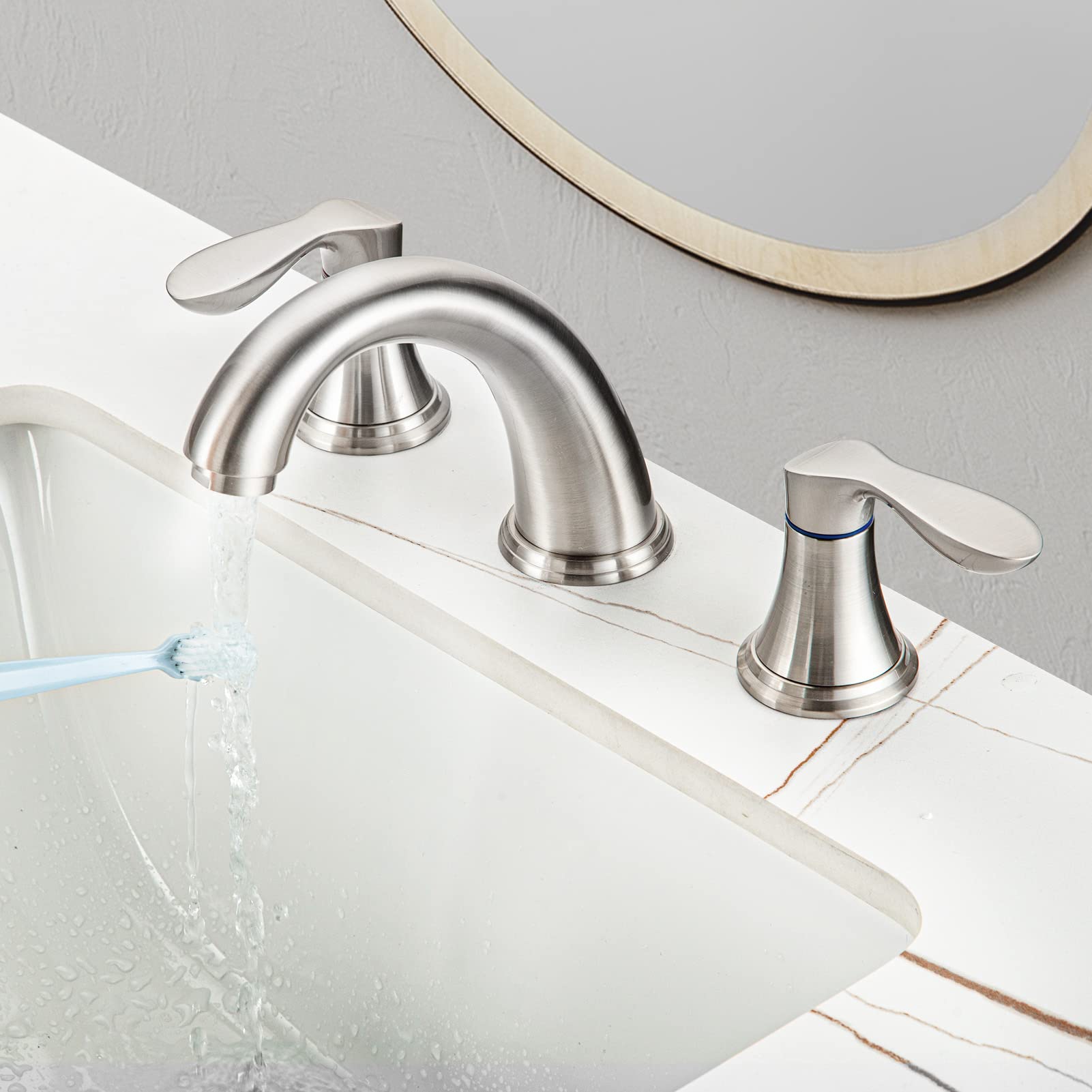 GARVEE Bathroom Faucet 8 Inch Bathroom Faucets for Sink 3 Hole Widespread Brushed Nickel Bathroom Faucet
