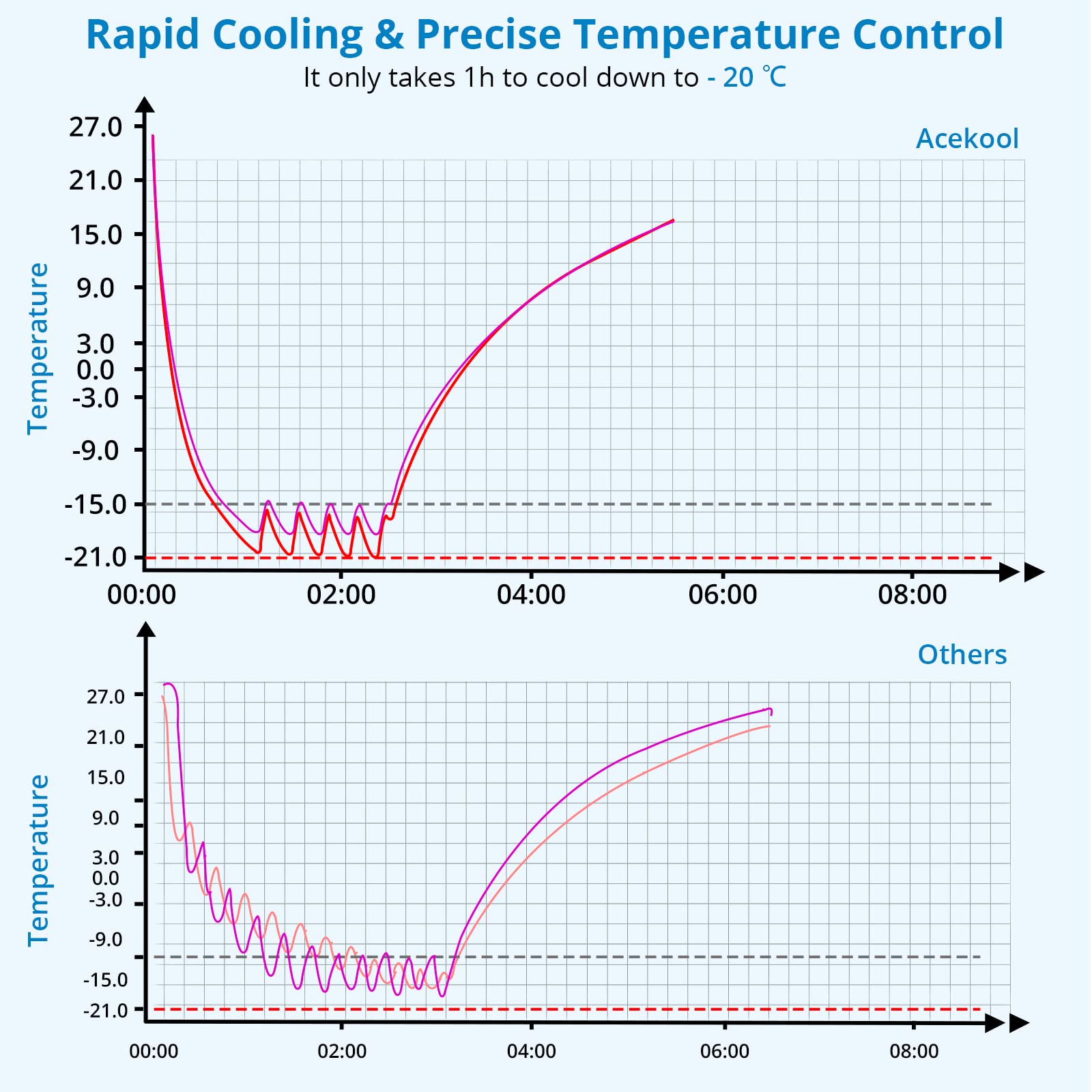 RV travel refrigerator, fast cooling. It can cool an empty portable refrigerator to 32??F in 20 minutes. Temperature control: -4¡§H-68¡§H. Low noise: ?¨¹45dB. It has a 3-level voltage protection mechanism of H/M/L.