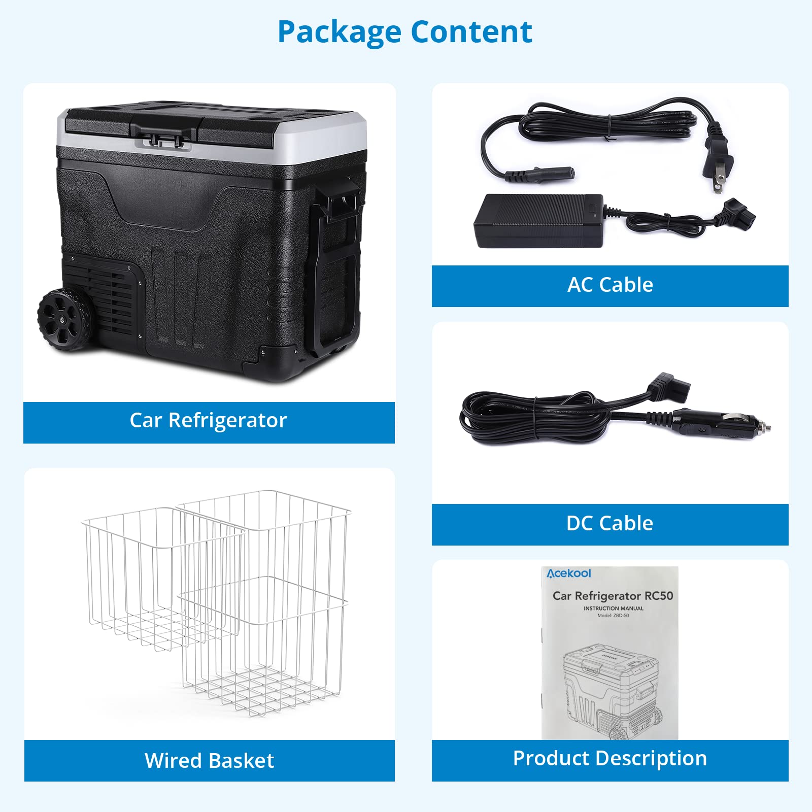 Included Components | 1 x Car refrigerator 1 x Cigarette lighter adapter 1 x Plug adapter 1 x User manual 2 x Baske |