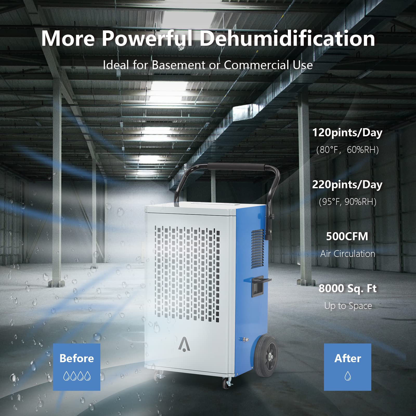 GARVEE 220 Pints Commercial Dehumidifier Portable Industrial Dehumidifier For Home Basement Garages Job Site