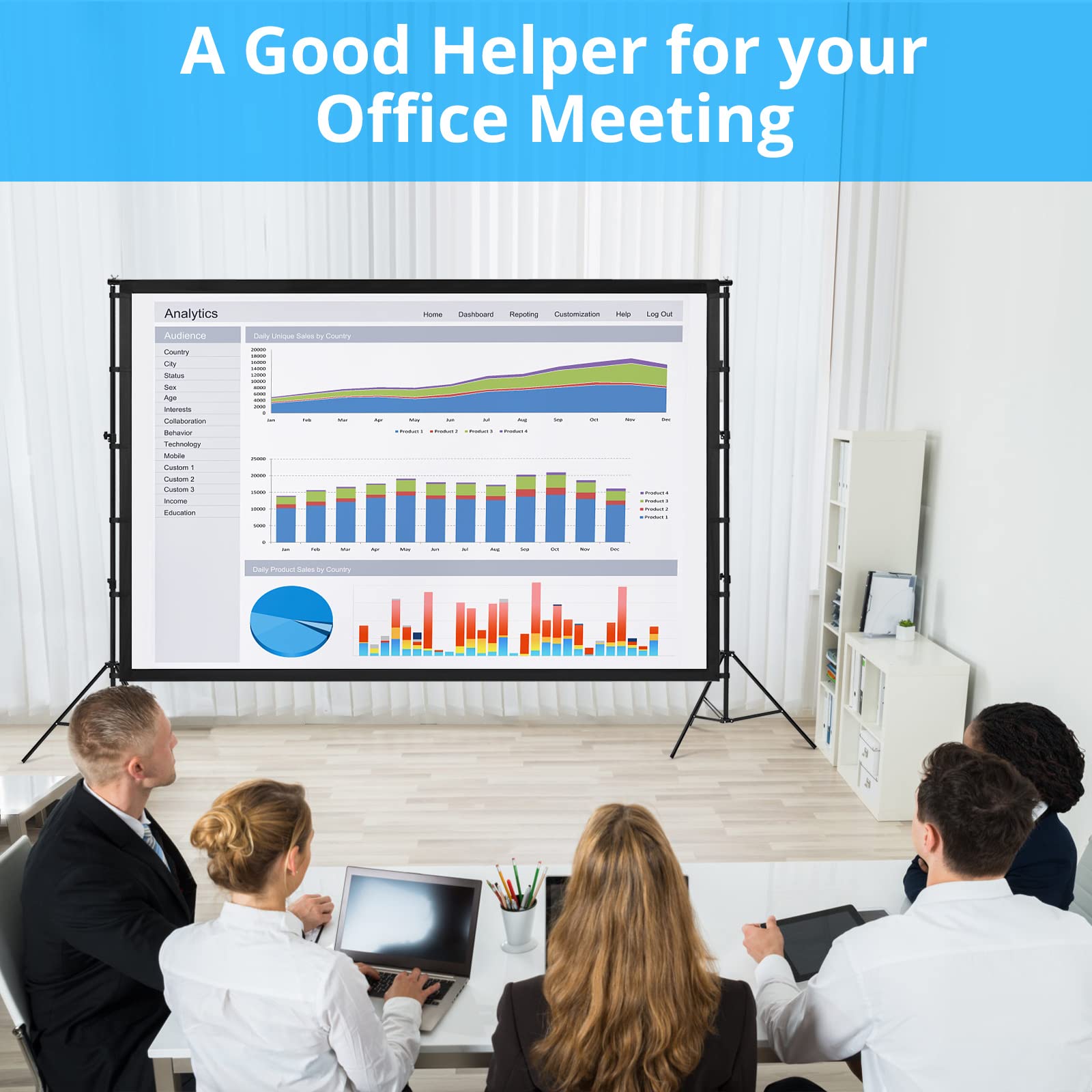 120 inch Projector screen with stand is perfect for home theater, schools, offices, weddings, church, education, conference room presentation, public display, outdoor movie and so on. It can also be used for Power Point presentations and other displays.