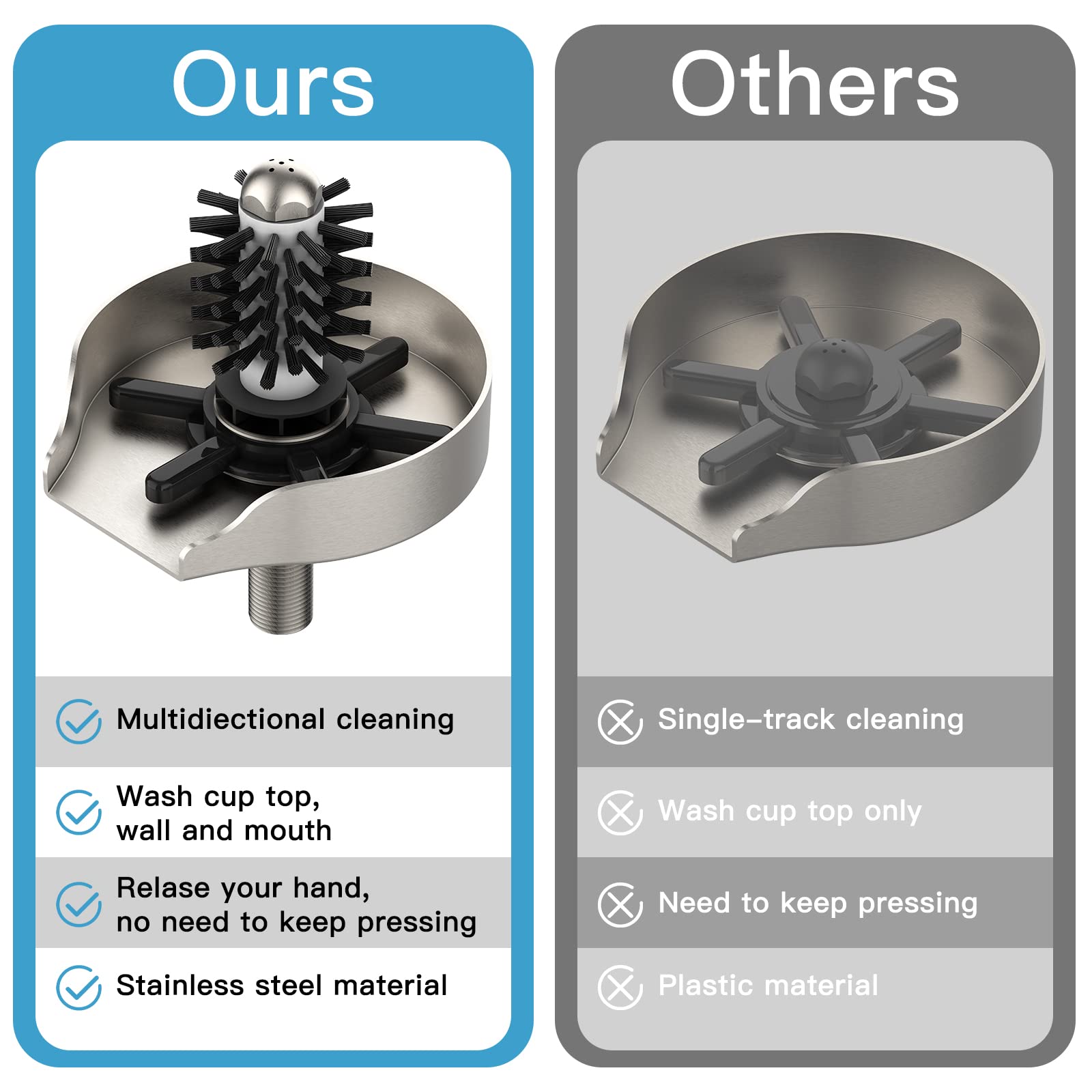 - ??Easy to Clean??- Powerful water flow keeps your mug clean like new, not only that, but the glass washer itself is super easy to clean; You can easily detach its brushes for cleaning under water, the stainless steel part can be cleaned by gently wiping with a rag. Easy to install too, no plumber required.