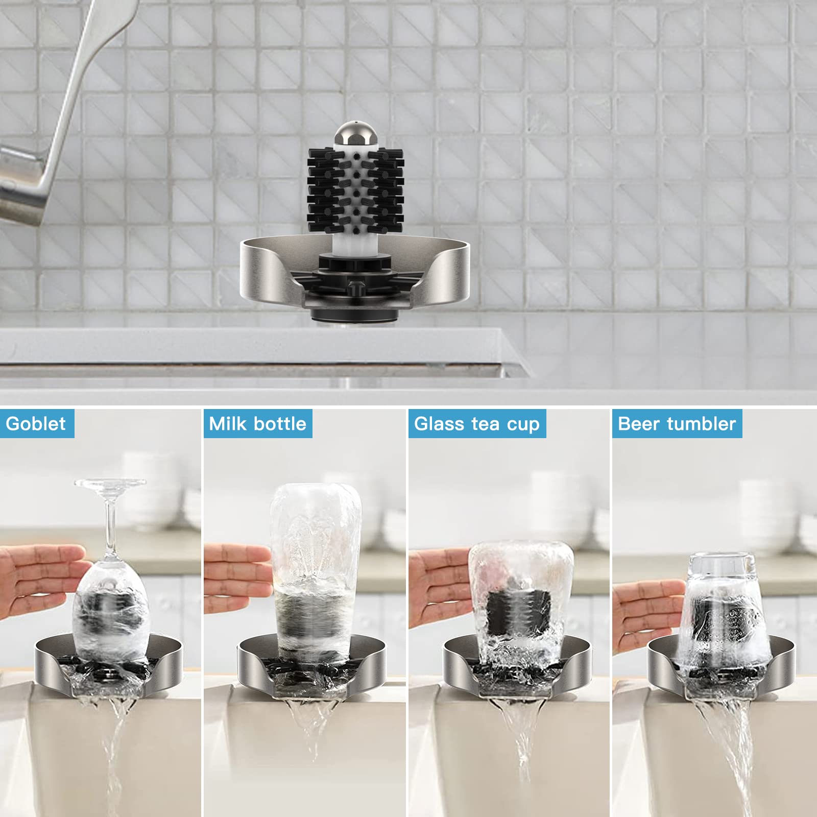 - ??All Round cleaning??- Different from ordinary cup washer, this glass rinser can clean cups in all directions; Top spray can effectively clean the top of the cup, the rotating brush can effectively clean the cup wall, the rotating water flow at the bottom can clean the cup mouth; Multi-azimuthfor cleaning.