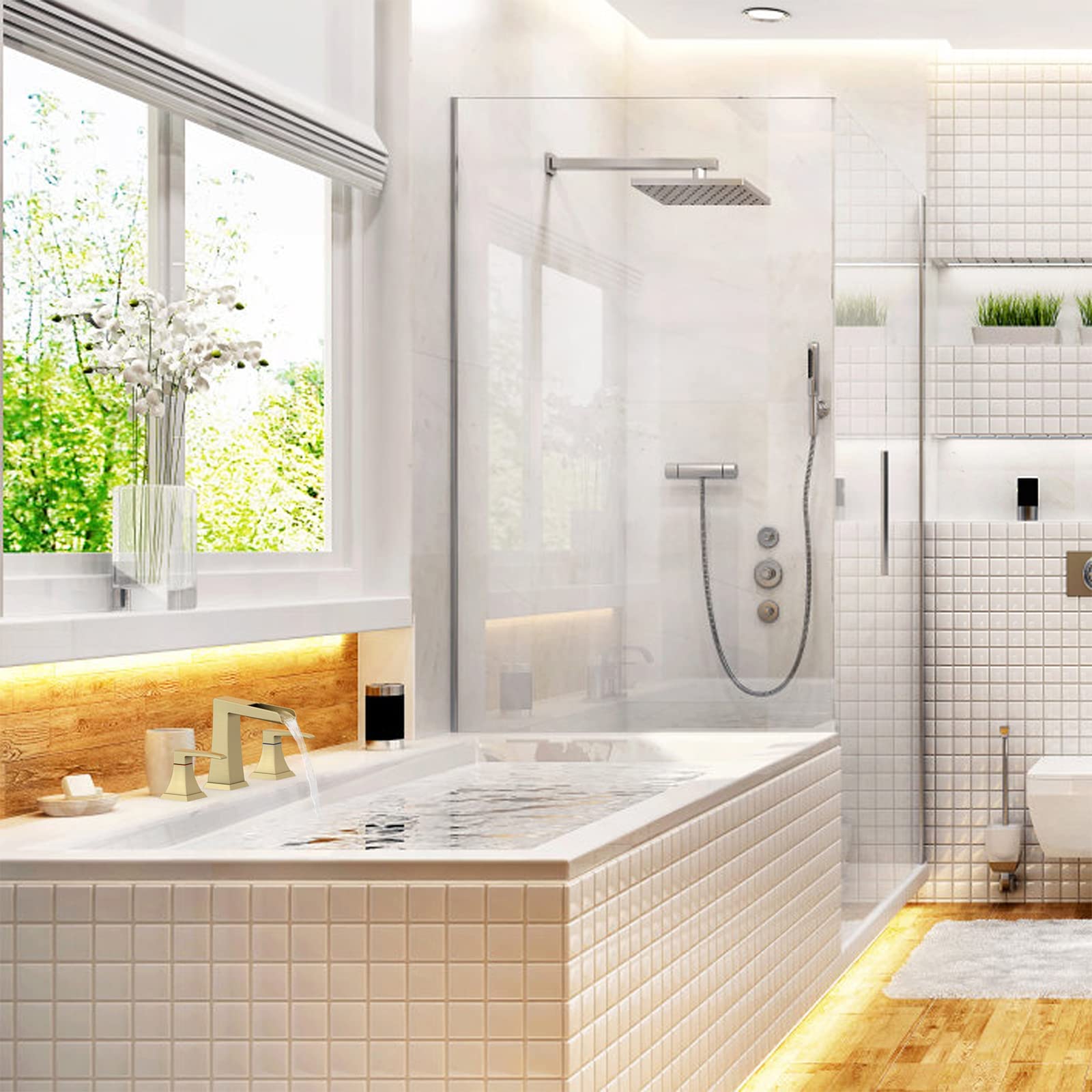The bathtub faucet set has quick connection structure, easy to install, is easy to install by yourself without a plumber; Widespread design dtstance adjustable, 3 hole mount with 6-12 inch widespread design, the distance is adjustale up on your actual requirements. Hole size: 30-35mm/ 1.18-1.38 Inch.