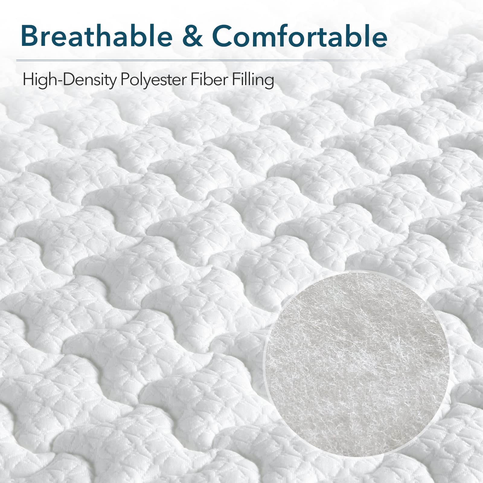 - Quilted Pillow Top Cover: The full mattress topper is covered with a zippered pillow top, which is filled with polyester contributing to perfect breathability and softness. The removable cover also features adjustable elastic straps in the 4 corners and non-slip fabric on the bottom, to keep the topper secure on your mattress