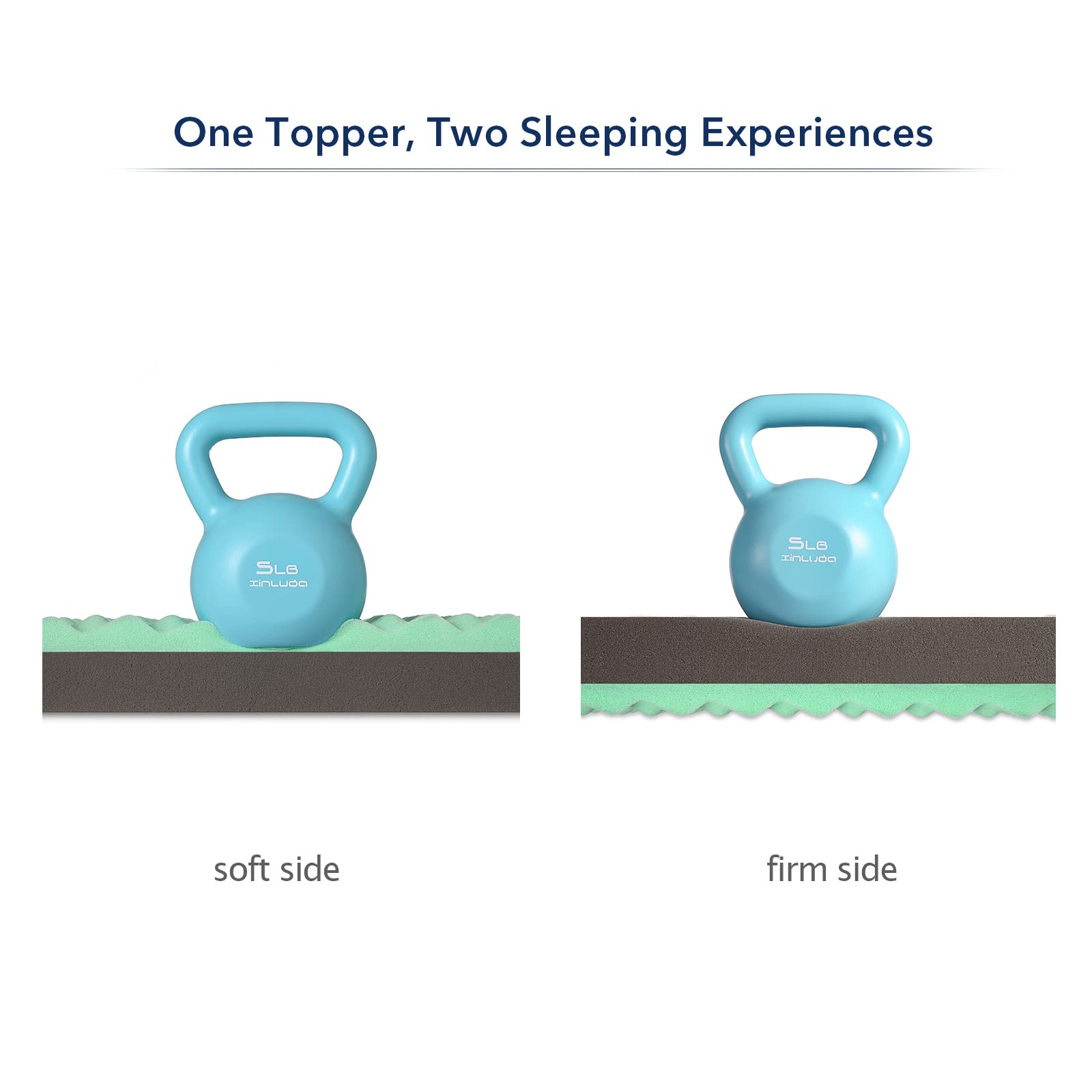 Combine with 1" memory foam and 2" high-density base foam to balance soft and well-support. Besides, this queen mattress topper provides a soft side and a firm side for you to choose from by flipping the foam layer
