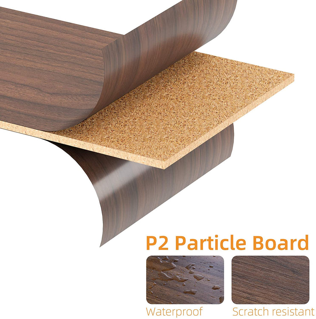 Our desk is made of Eco-friendly P2 particle board with perfect edge technology. The textured surface is anti-skidding, anti-scratch, and easy to clean. The metal frame is made of 30*30mm, 0.8mm thickness iron, bottom plus triangle support frame and extra"V" style which can ensures strength and durability. Total maximum weight is 200lbs.