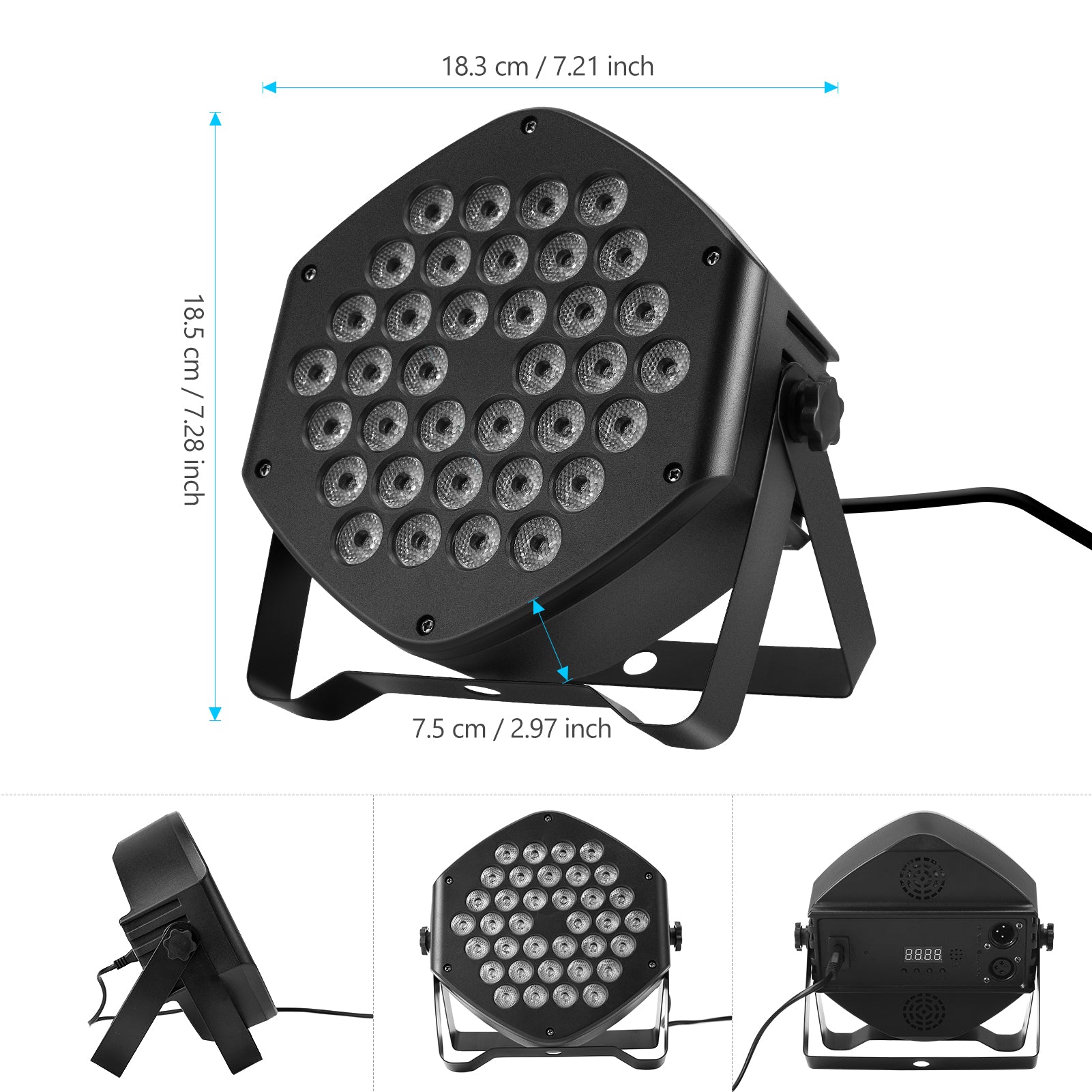 Built in with 36 PCS RGB LED light beads, the par light gives off bright and colorful lights to create corresponding atmosphere; Also you can change colors anytime with Color +/- function.