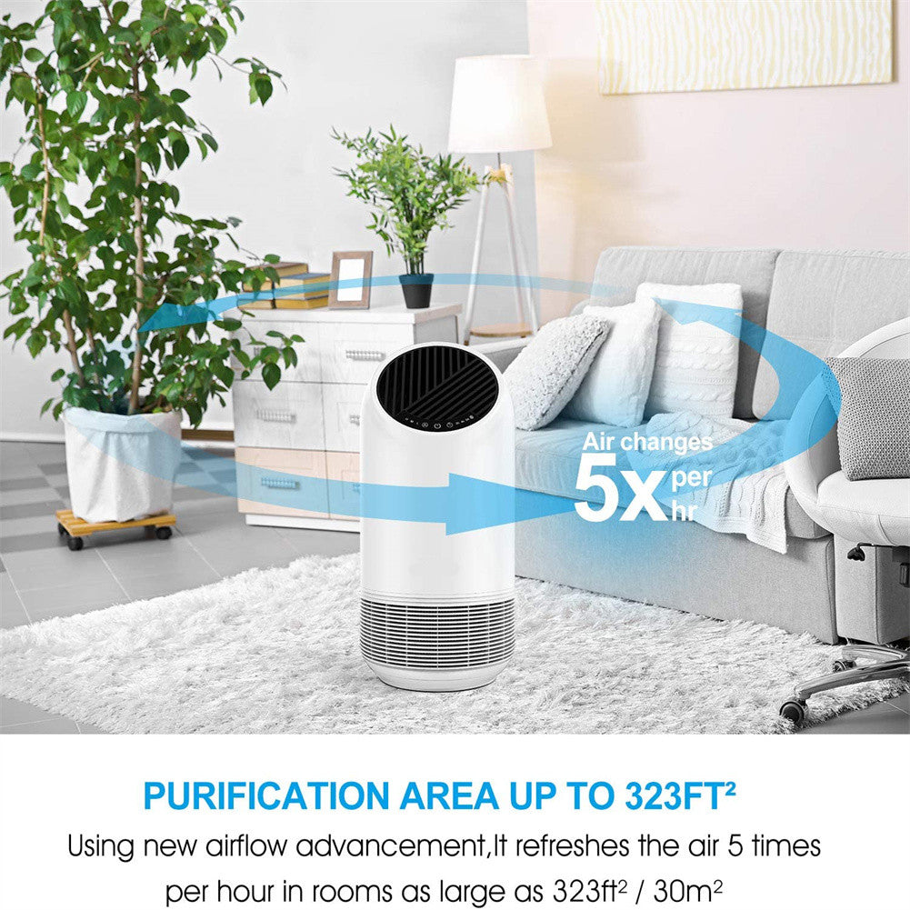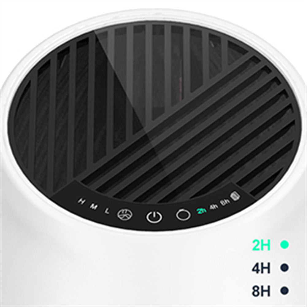 3. Fan Speeds and 3 Timer Settings - Buttons on the panel include: Power Button, Timer Button, Speed Button and Filter Replacement Indicator. 3 timer options (2H/4H/8H) allow you to set the air purifier to run at a specific time, helping you save energy and money, while 3 fan speeds (low/medium/high) allow you to choose the speed according to your needs Different purification needs and room sizes.