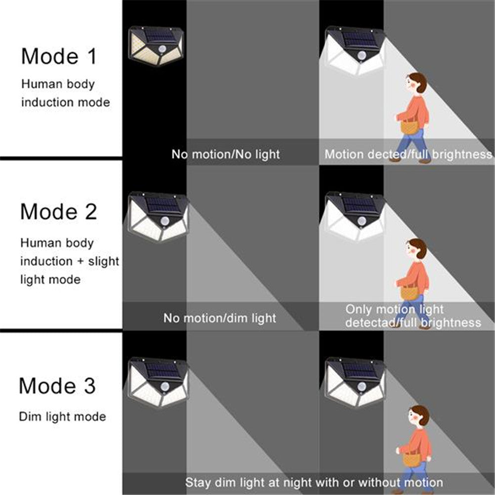 REDCOLOURFUL 100led Solar Wall Lights Waterproof Motion Sensor Light Black