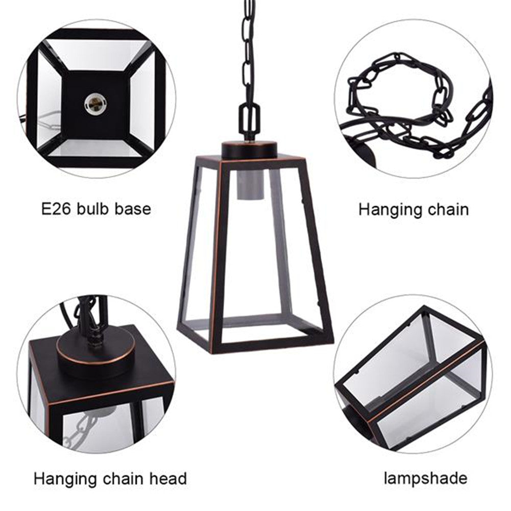 REDCOLOURFUL 110-240v Chandelier E26 Lantern Pendant Light for Dining Room Kitchen Hallway Black