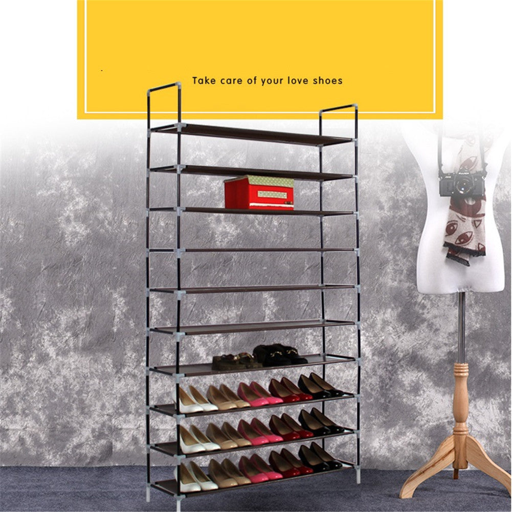 Perhaps how to store different kinds of shoes or boots in a shoe rack is a big problem for each housewife. This 100cm Ultra Large Capacity 10 Layers Non-woven Fabrics & Steel Shoe Rack is your best bet! This creative and easy-to-install shoe rack, designed into 10 layers, could accommodate different kinds of shoes. Excellent for your long-lasting use, the tough materials offer the best bearing capacity. To our surprise, it can hold up to pairs of shoes. In addition, it is a room-saving item for home use!