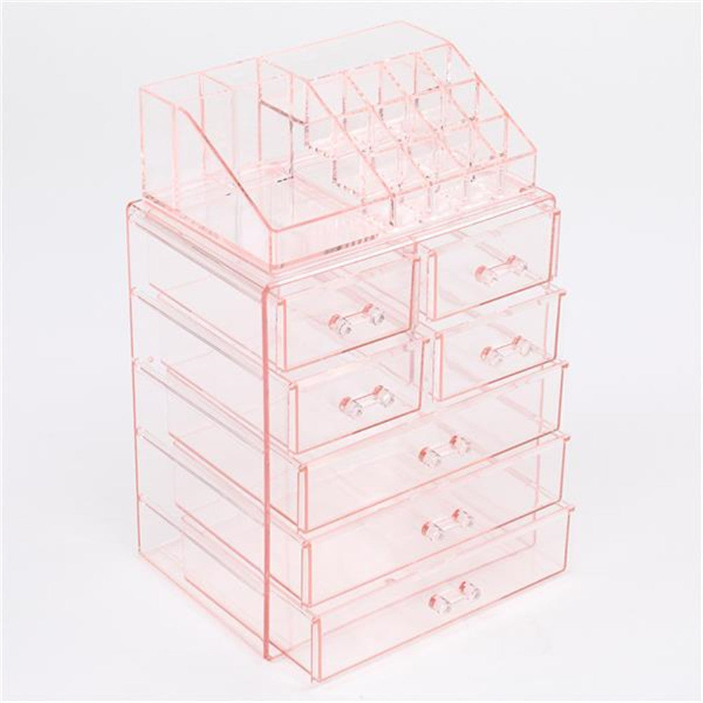 RONSHIN 2pcs Makeup Organizer Cosmetic Storage Drawers Pink