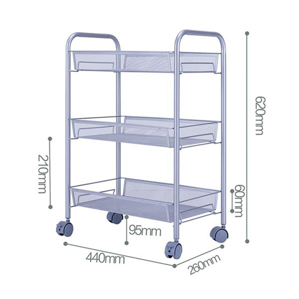 RONSHIN 3 Layer Removable Storage Cart 44 x 26 x 62cm Silver