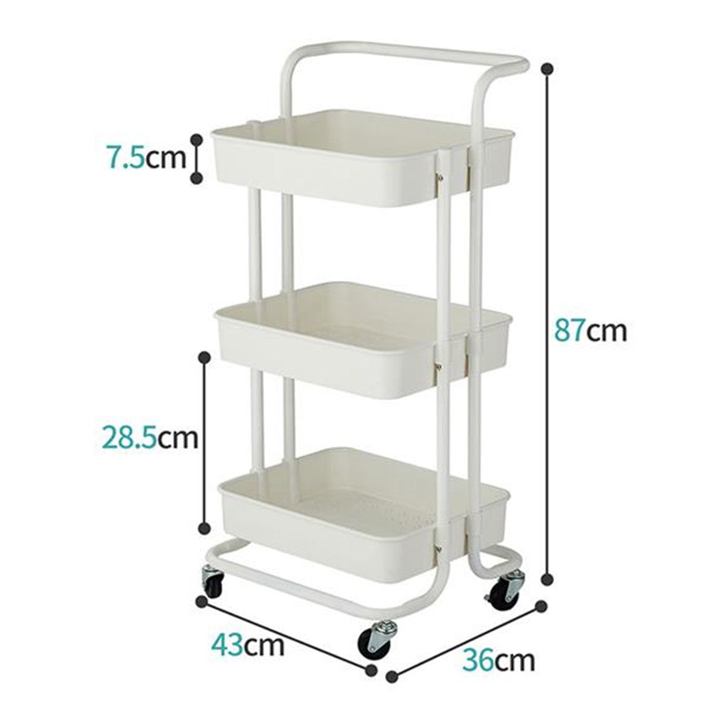 RONSHIN 3 Layers Storage Cart for Kitchen Bedroom Milk White