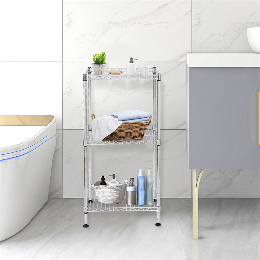 '--Ideal for use in bathrooms, closets and bedrooms; store towels, Bath supplies, toys, etc.--Style meets function with chrome finish--Nsf certified: healthy living, modern design that complements any decor--Easy to assemble without power tools, customize the unit to suit your needs--this shelving for food equipment areas including refrigerators, freezers, and ware washing areas--Dimensions: (35.43 x 17.72 x 19.29)" / (90 x 45 x 49)cm(L x W x H)
