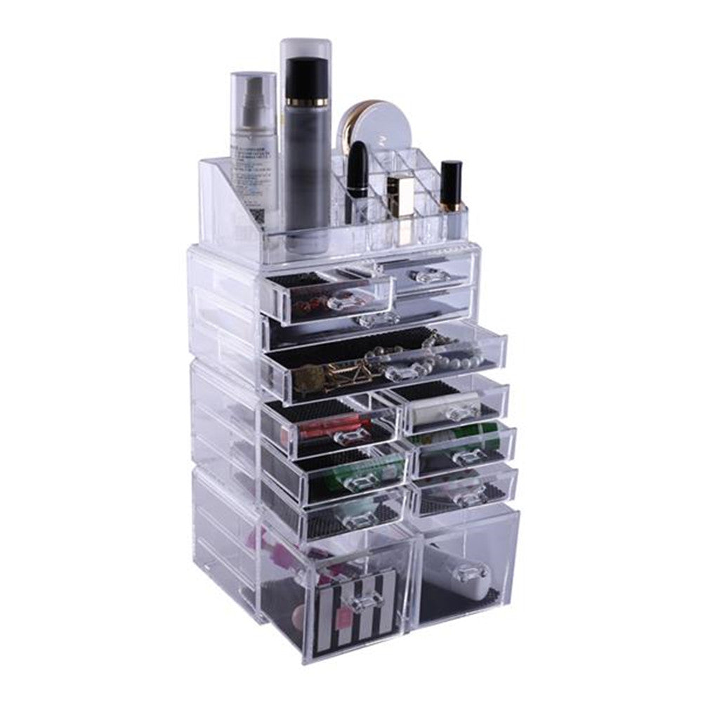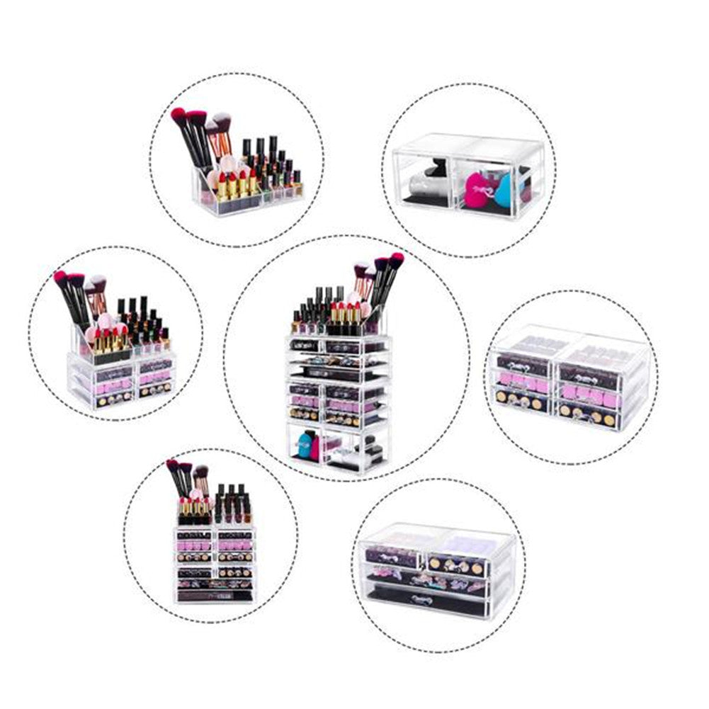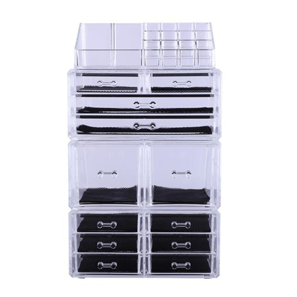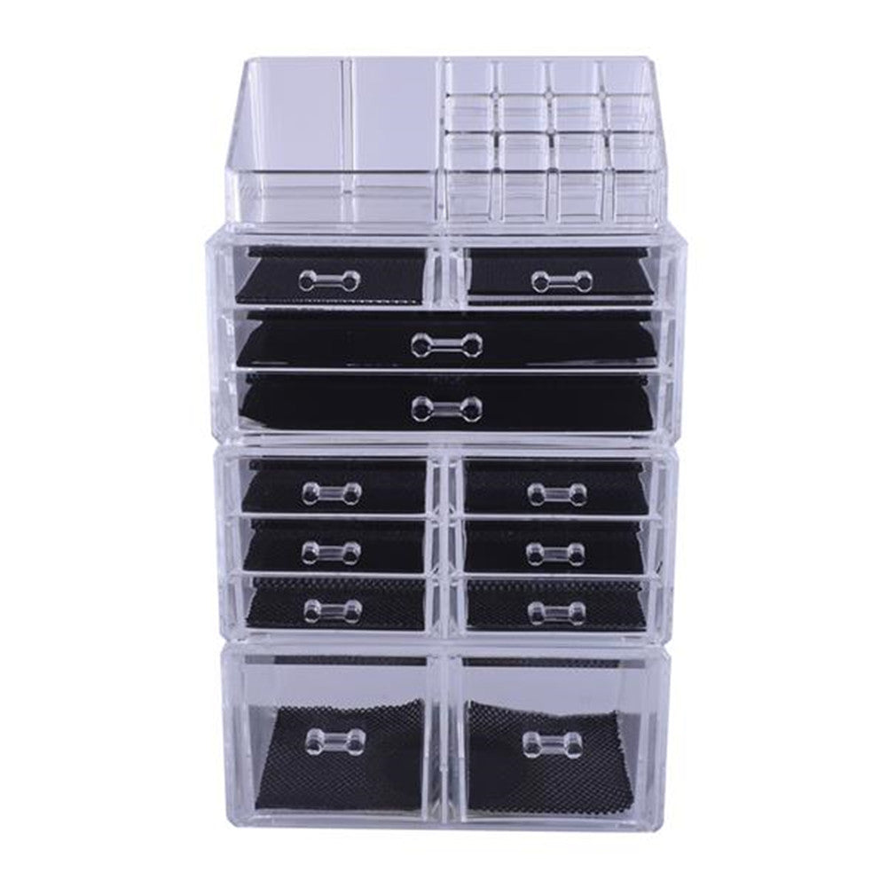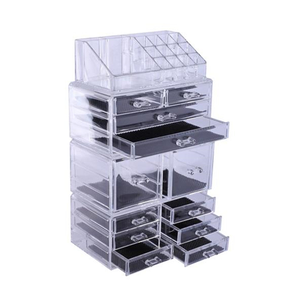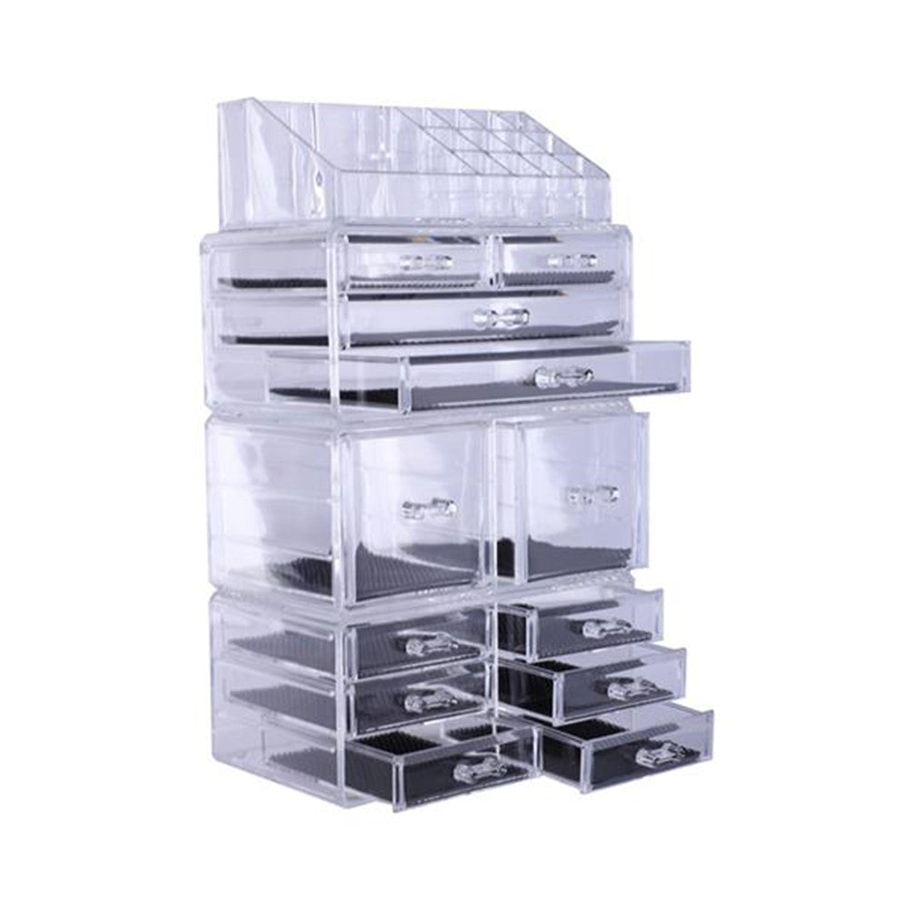 RONSHIN 4Pcs/Set Makeup Organizer Plastic Cosmetic Storage Drawers Display Box Transparent