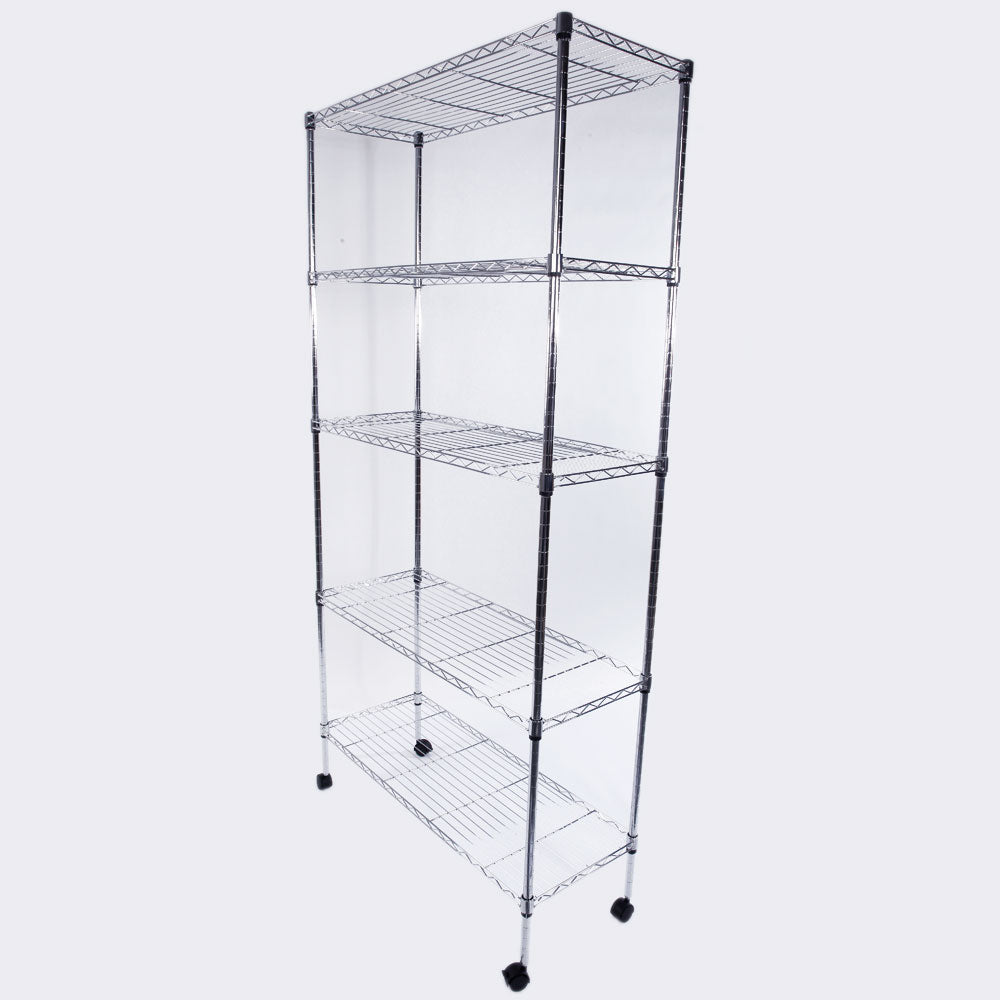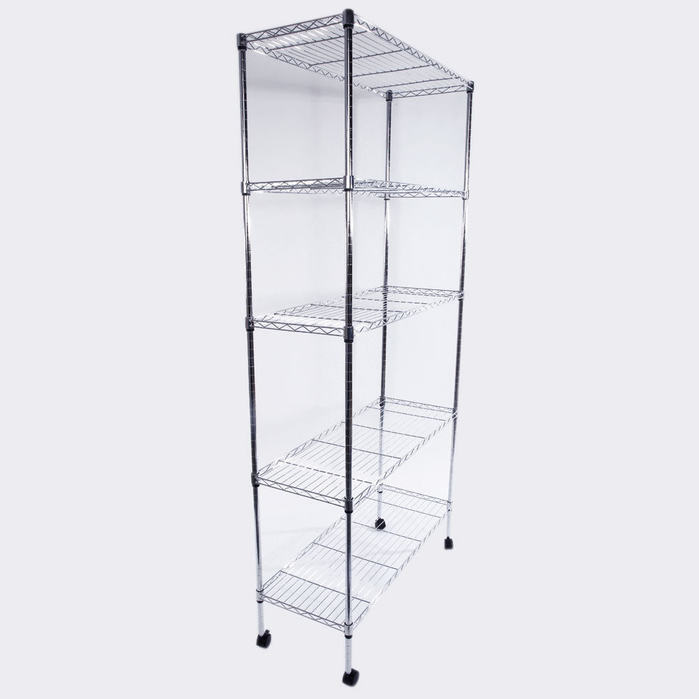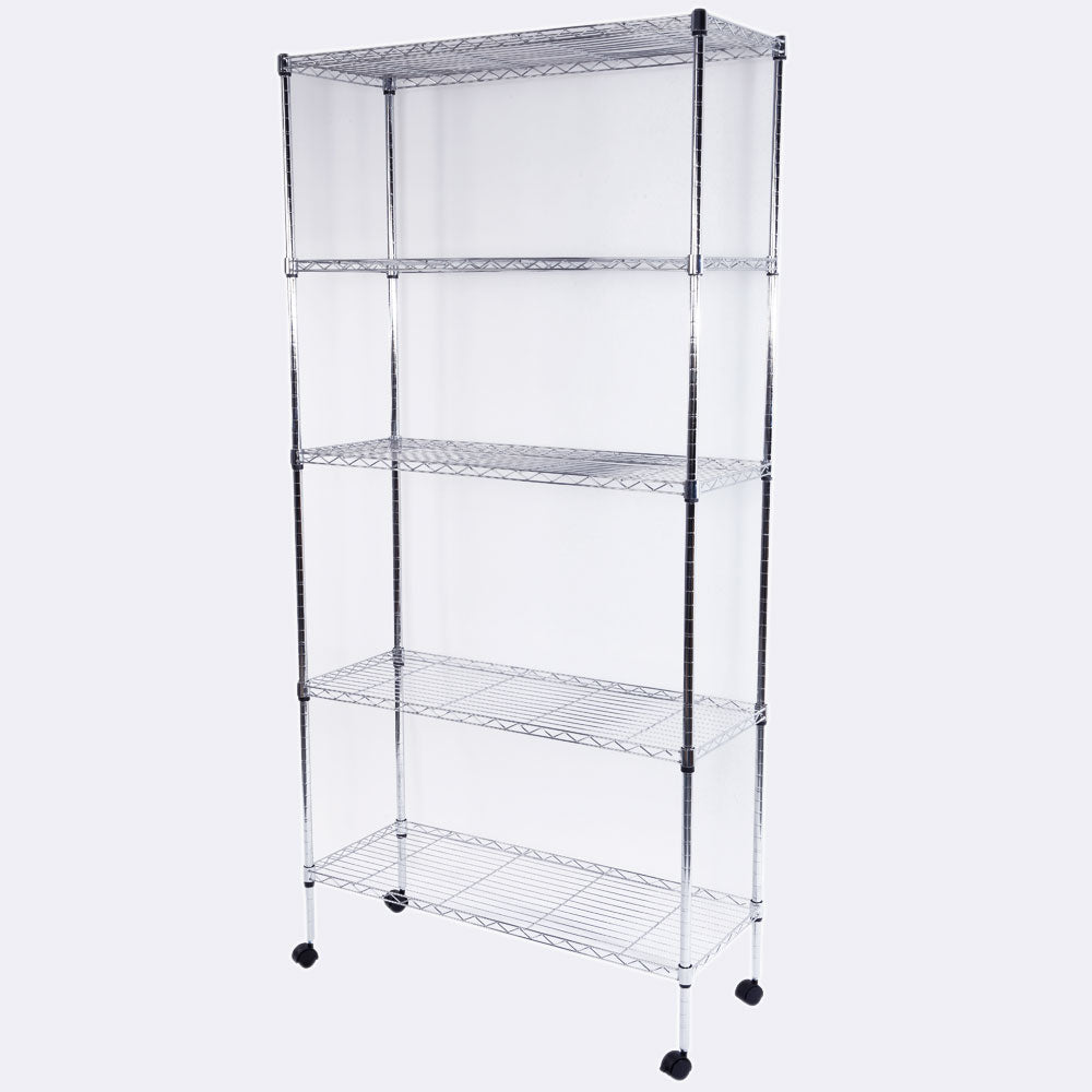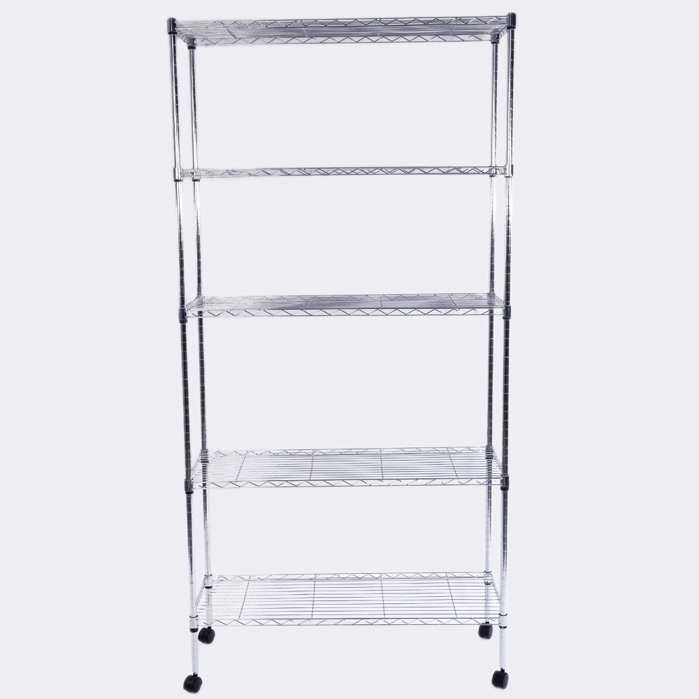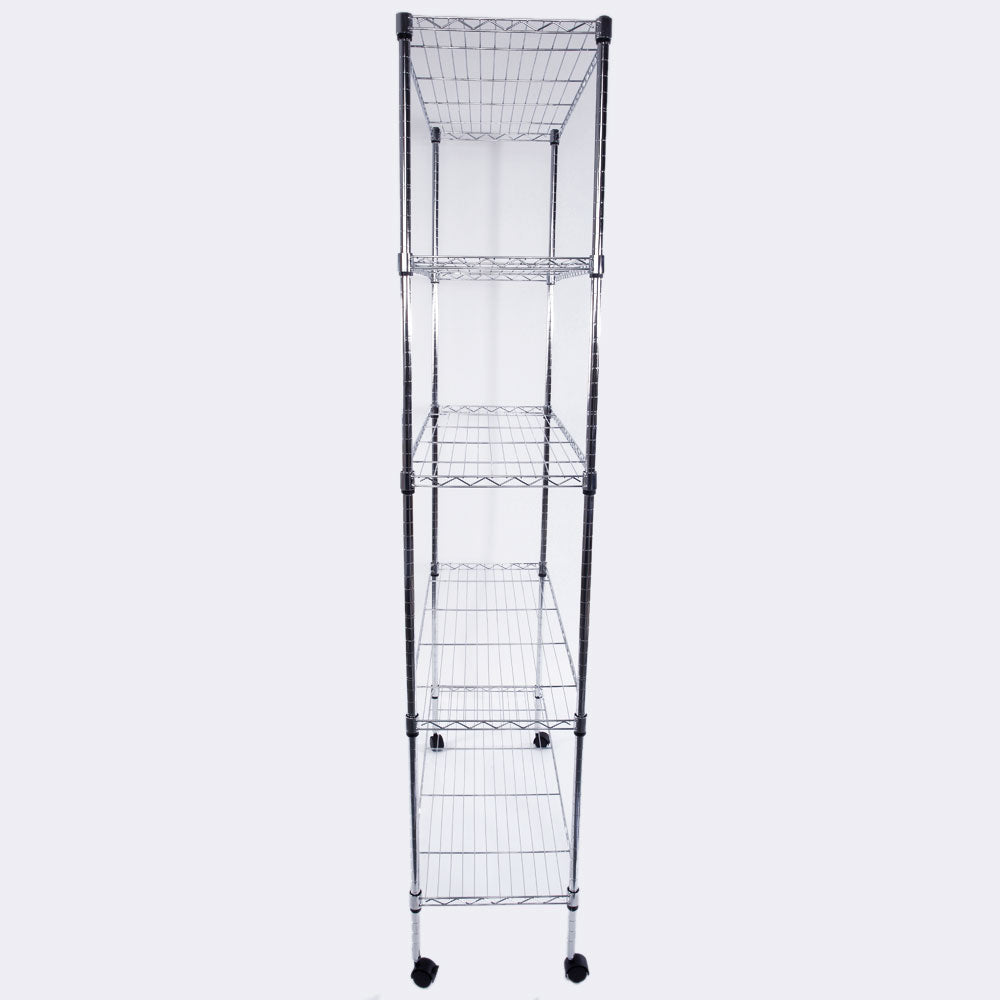 RONSHIN 5-Layer Iron Shelf with 1.5 inch Smooth Wheels Chrome Plated Storage Rack Organizer