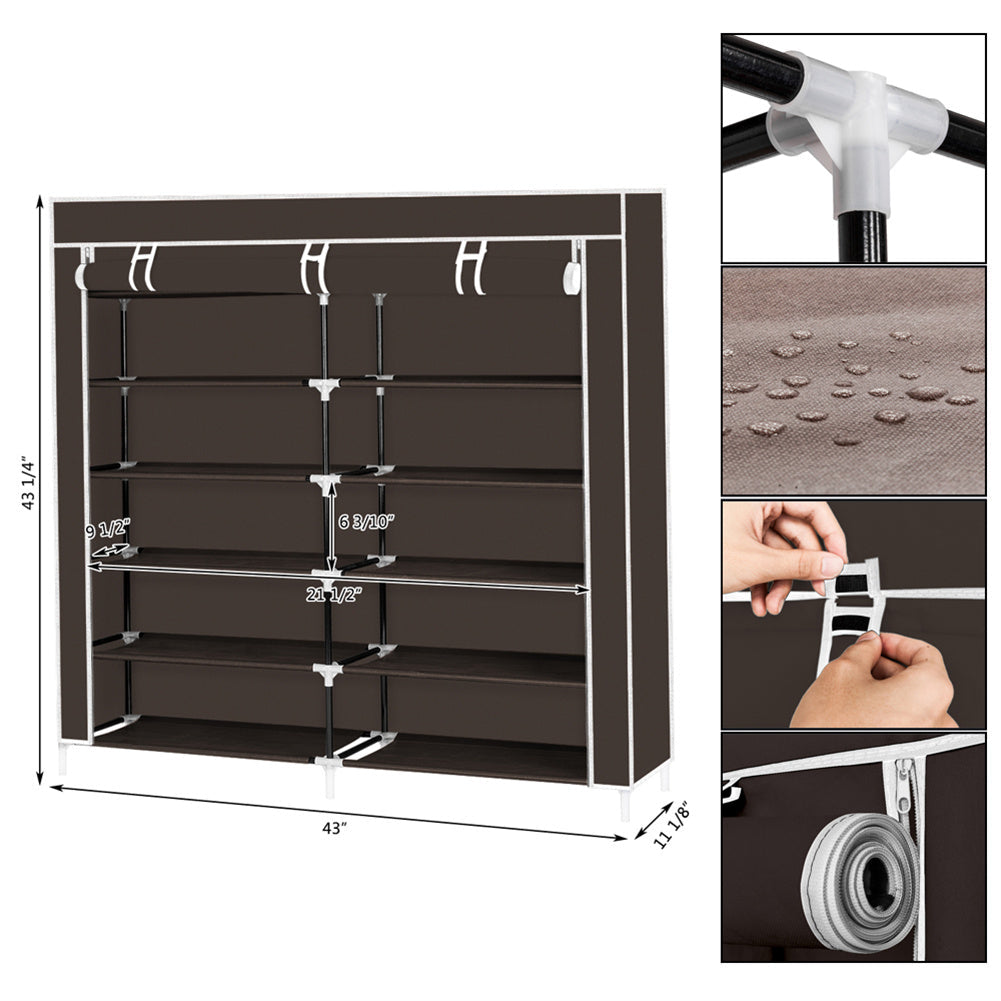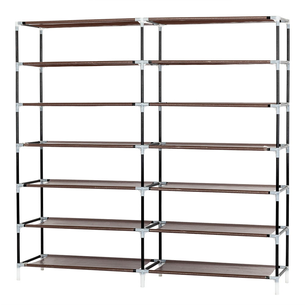 RONSHIN 7 Layers 14 Grids Shoe Rack Cabinet 110*28*115cm Storage Dark Brown