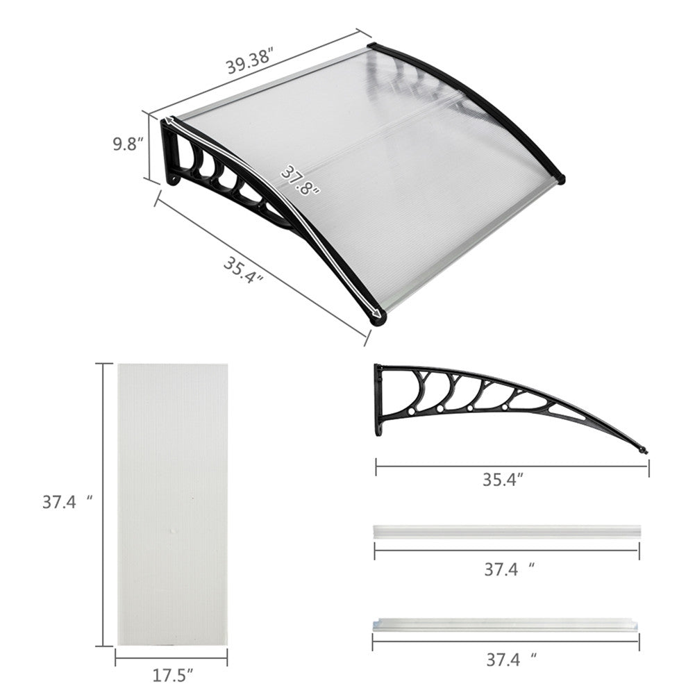 Build a mini shelter for resisting rain or scorching sun at the gate or window! You may feel it wonderful by using our 100 x 100 Household Application Door & Window Rain Cover Eaves Canopy! This is a superb design integrating high-class ABS and polycarbonate materials , durable and wear-resistant to use. Aluminum bracket could strongly sustain this canopy. It bulges to shape a small shield. Quite easy to install and remove! It also acts a decoration for your house! Don't miss such a good chance!