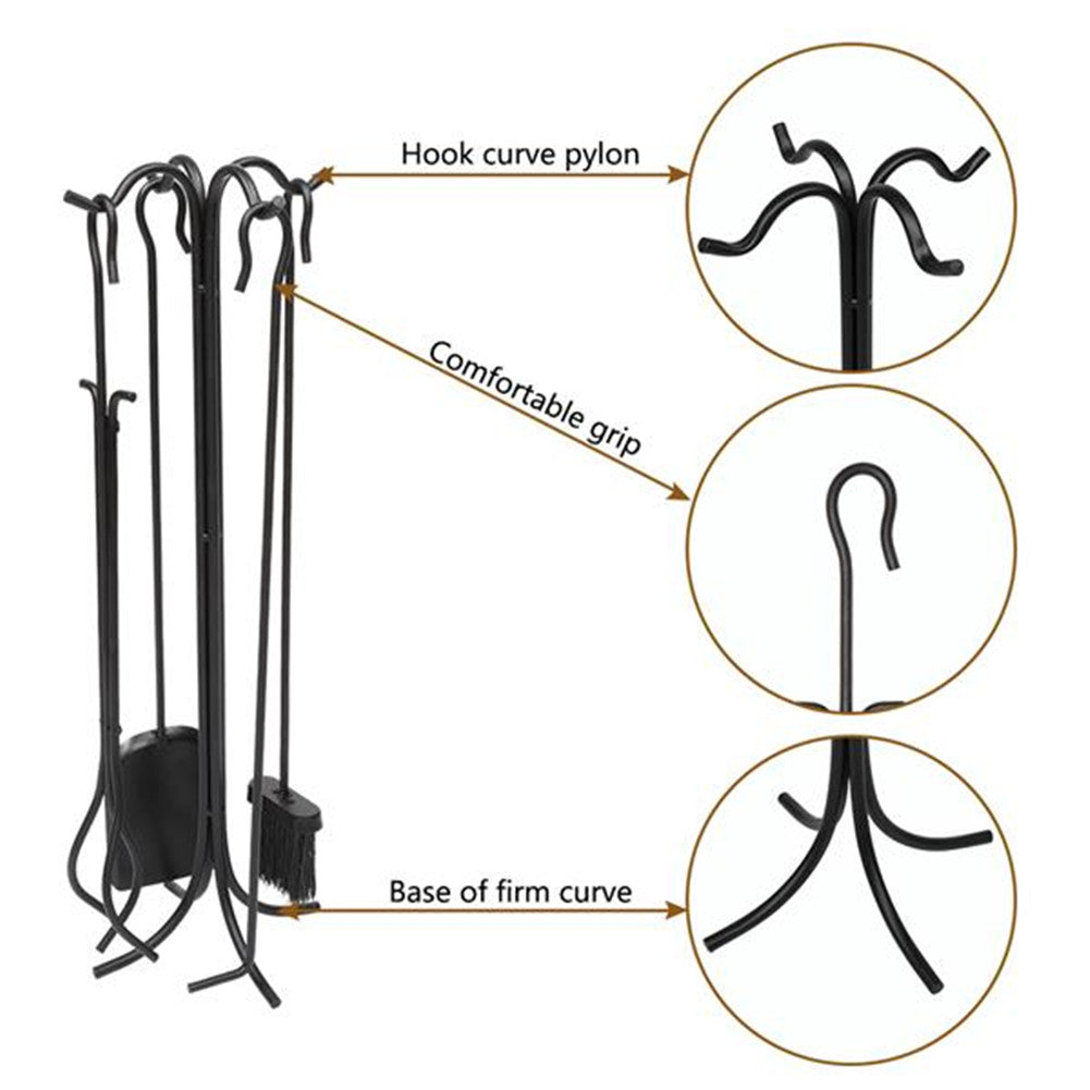 RONSHIN Fireplace Stove Tools 5-in-1 Hook Bracket Black